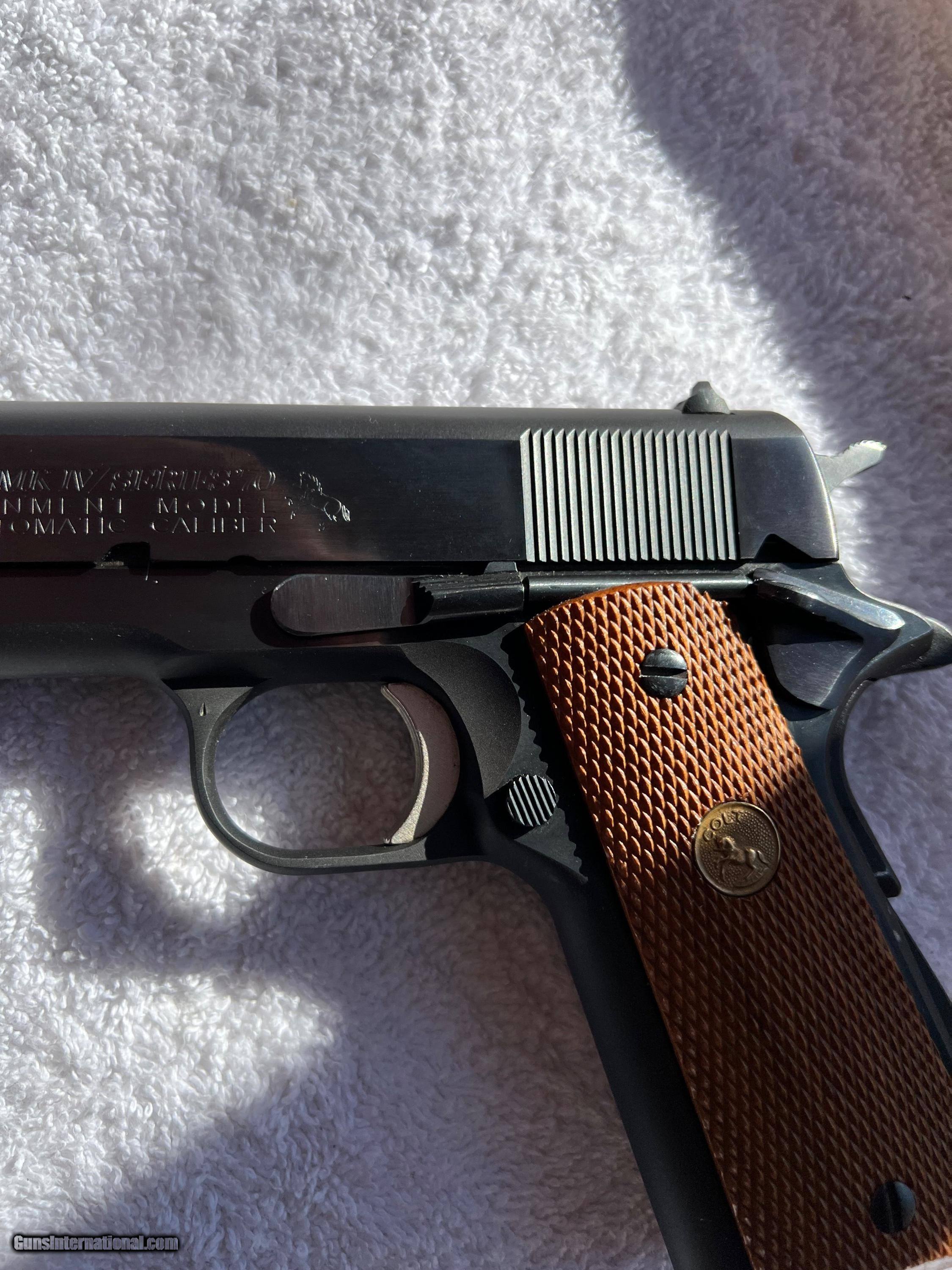 Description: COLT. 1911. SERIES 70. MADE IN 1977. 99 %. Blue. 99 %. Wood. With. Box. This. Handgun is in. Excellent Like. New. Condition. Shipping. 50.00. Cashiers. Check. Or. USPS. Money Order. No. Sales. Where. Prohibted. No sales to. CA. FOR. Credit. Cards. Call. Lonnie. At. 307-251-9789. Add. 4%. Thank. You. Mark. 307-797-9634. . SOLD |