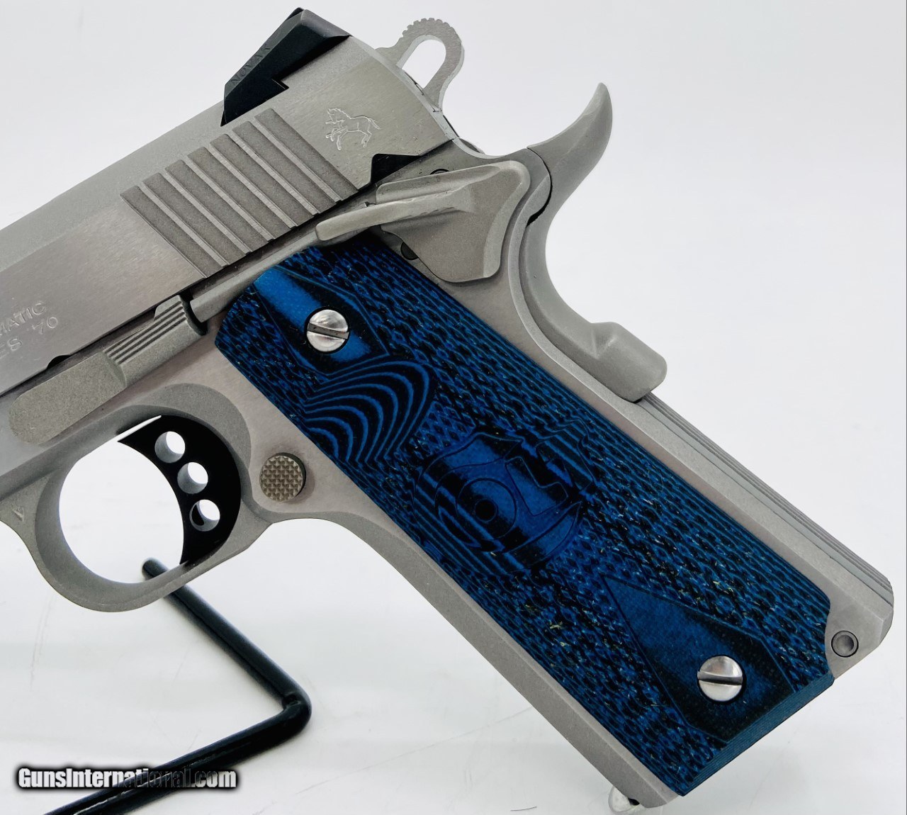 Description: A true competition 1911 that's ready for the battle against the timer. Now available in corrosion resistant Stainless Steel. Custom G10 Grips, Upswept Beavertail Grip Safety, and Undercut Trigger Guard keep the pistol low in the hand for increased control. The Dual Recoil spring system reduces felt recoil while extending recoil spring life. A National Match Barrel and Novak Adjustable Fiber Optic Sights help with precision shooting. The Series 70 Firing System ensures a clean crisp trigger pull. Specifications: