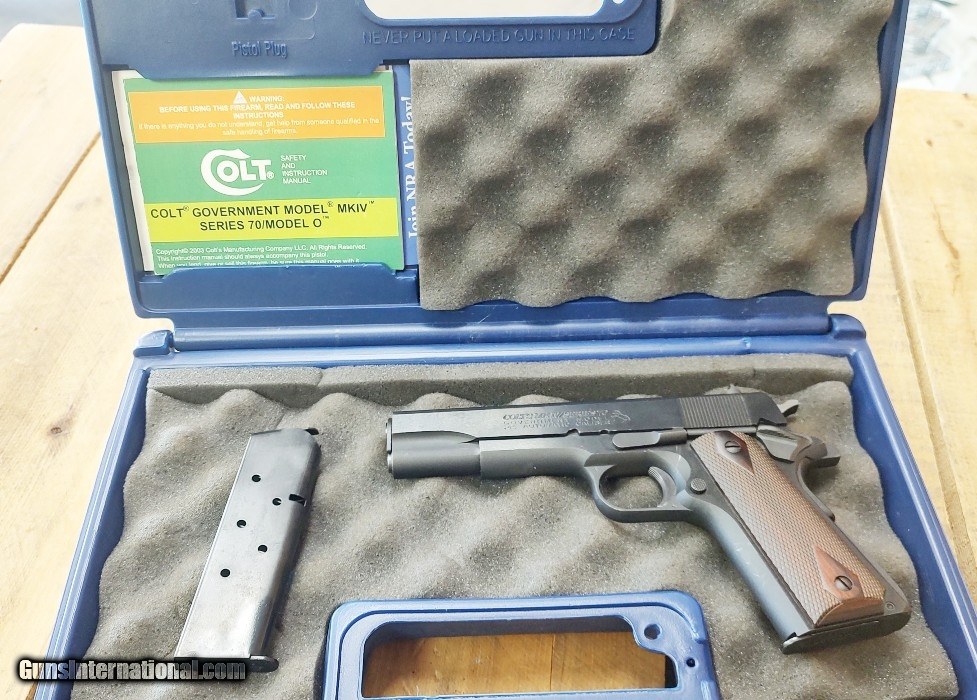 Description: Guns Listing ID: 502448 COLT GOVT MODEL SERIES 70, 5\" BARREL, W/2 COLT MAGS SOLD Manufacturer: COLT Model: SERIES 70 GOVERNMENT Caliber Info: .45 ACP Condition: Used - Non-Certified Barrels: 5 BARREL Action: SINGLE SHOT Finish: BLUED Weight: 2.3 lbs. |