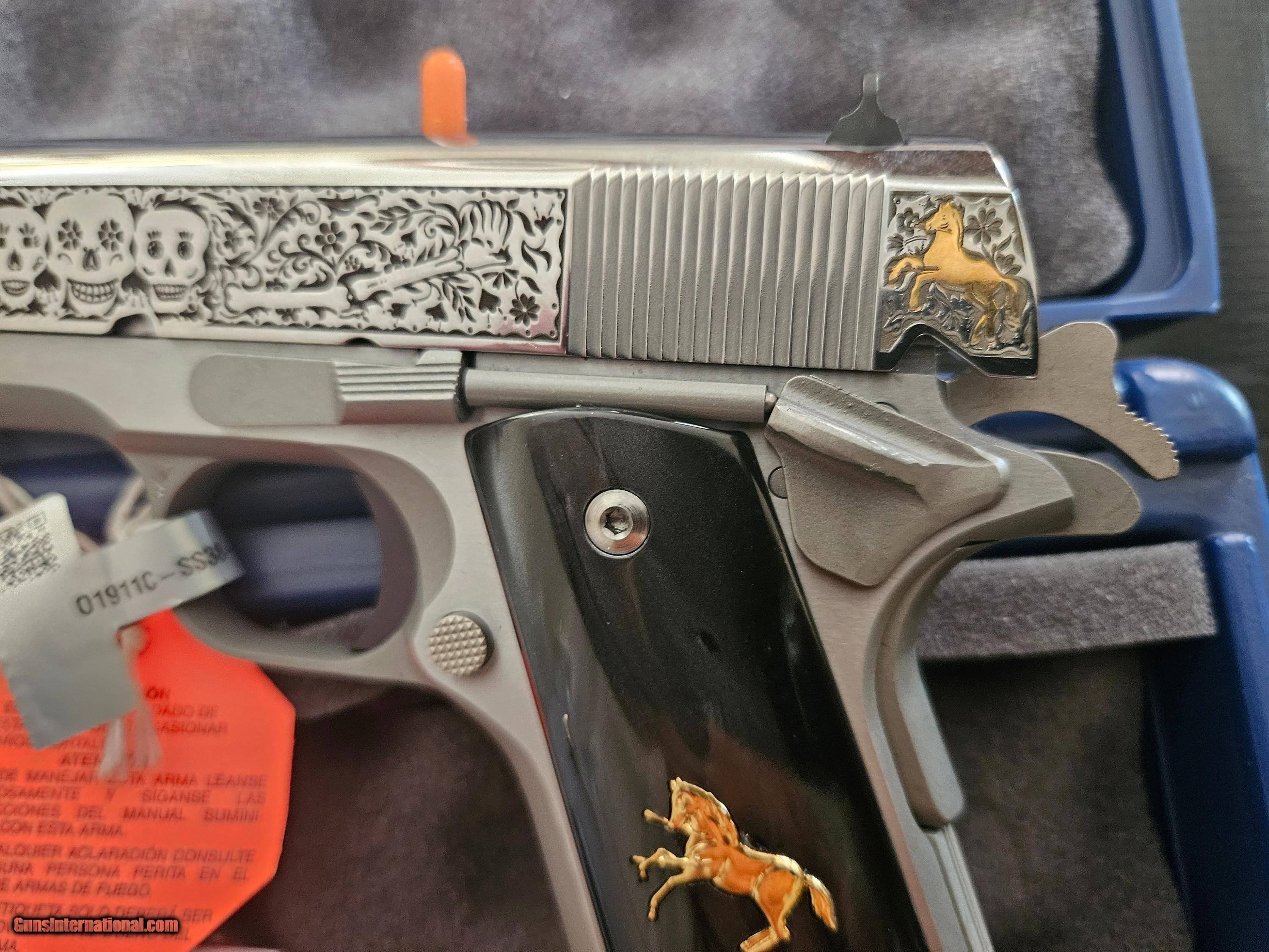 Description: Colt Talo 38 Super Day of the Dead that is NIC with Paperwork. One of 500 produced. Credit Cards add 3%. Shipping and Insurance is 35.00. SOLD Handgun Caliber: .38 Super Auto |