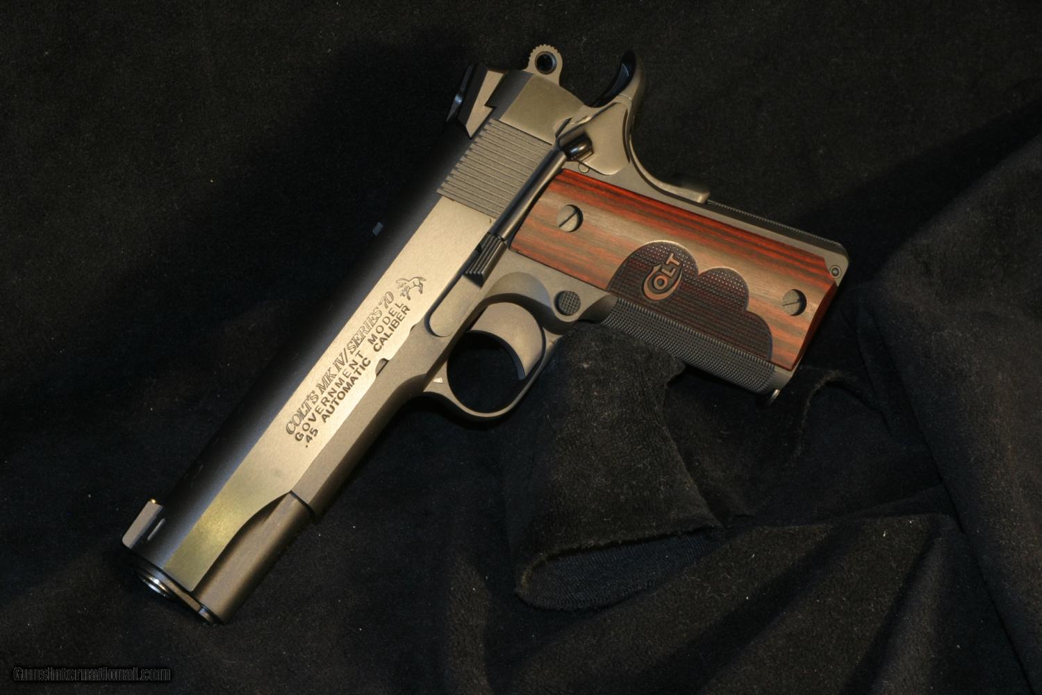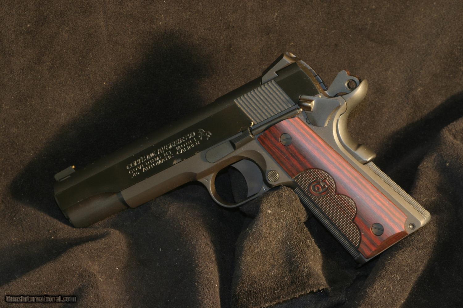 Description: This is a very unique model,full 5" Government with alloy liteweight frame,built in the '70 series fashion and all the Wily Clapp features, commander style hammer,combat sites,gold bead front and slim WC grips! SOLD |