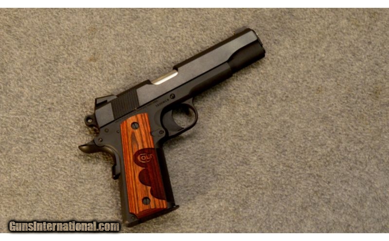 Description: This is a pre-owned Colt Wiley Clapp Government Model Series 70 Model O. SOLD Caliber Info: .45 Auto. Metal Condition: Excellent condition. Wood Condition: Excellent condition. Bore Condition: Clean with bright lands. Barrels: 5 inch. Triggers: Long trigger. Stock: Fingerprint checkered wood grips with the Colt logo. Weight: 2 1/2 lbs. Sights: Novak wide notch rear sight and Novak brass bead front. Extras: Comes with the factory blue box, white sleeve, manual, padlock, and 2 factory 7 round magazines. Item Location: Glendale, AZ |