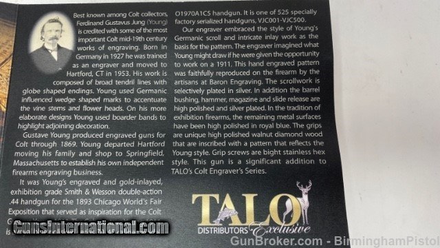 Description: Gustave Young Colt .45 ACP Series 70 Gov't Engraved 1911 BEAUTIFUL - Factory New SOLD |