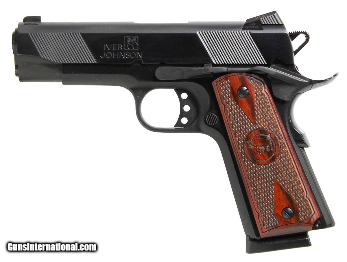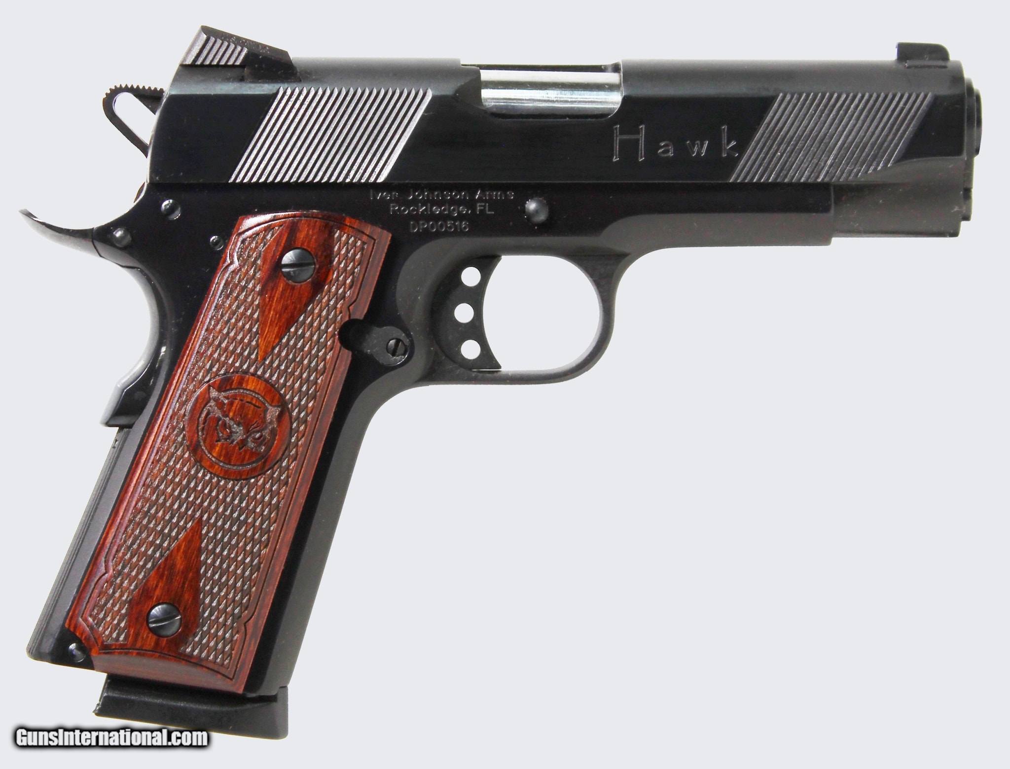 Description: Guns Listing ID: 911907 Iver Johnson Arms 1911 is a Series 70 pistol which means there is no firing pin block and comes with a flat serrated steel mainspring housing to hold up to the rigors of an everyday shooter. It features a finger relief cut near the trigger guard for a more comfortable shooting experience. It also utilizes a forged slide and cast frame which are CNC machined and then hand fitted to exceptional tolerances. Each slide is fit to an individual frame to give it a tight out of the box fit. The 1911 comes with one magazine gun lock manual and a hard black plastic lockable gun case. This 1911 Hawk Commander model features a polished blued finish 4.25 barrel Novak LoMount rear sight dovetail front sight frontrear angled serrations and walnut grips. SOLD Manufacturer: IVER JOHNSON Model: 1911 HAWK COMMANDER SERIES 70 Caliber Info: .45 ACP Condition: new Barrels: 4.25 BARREL |