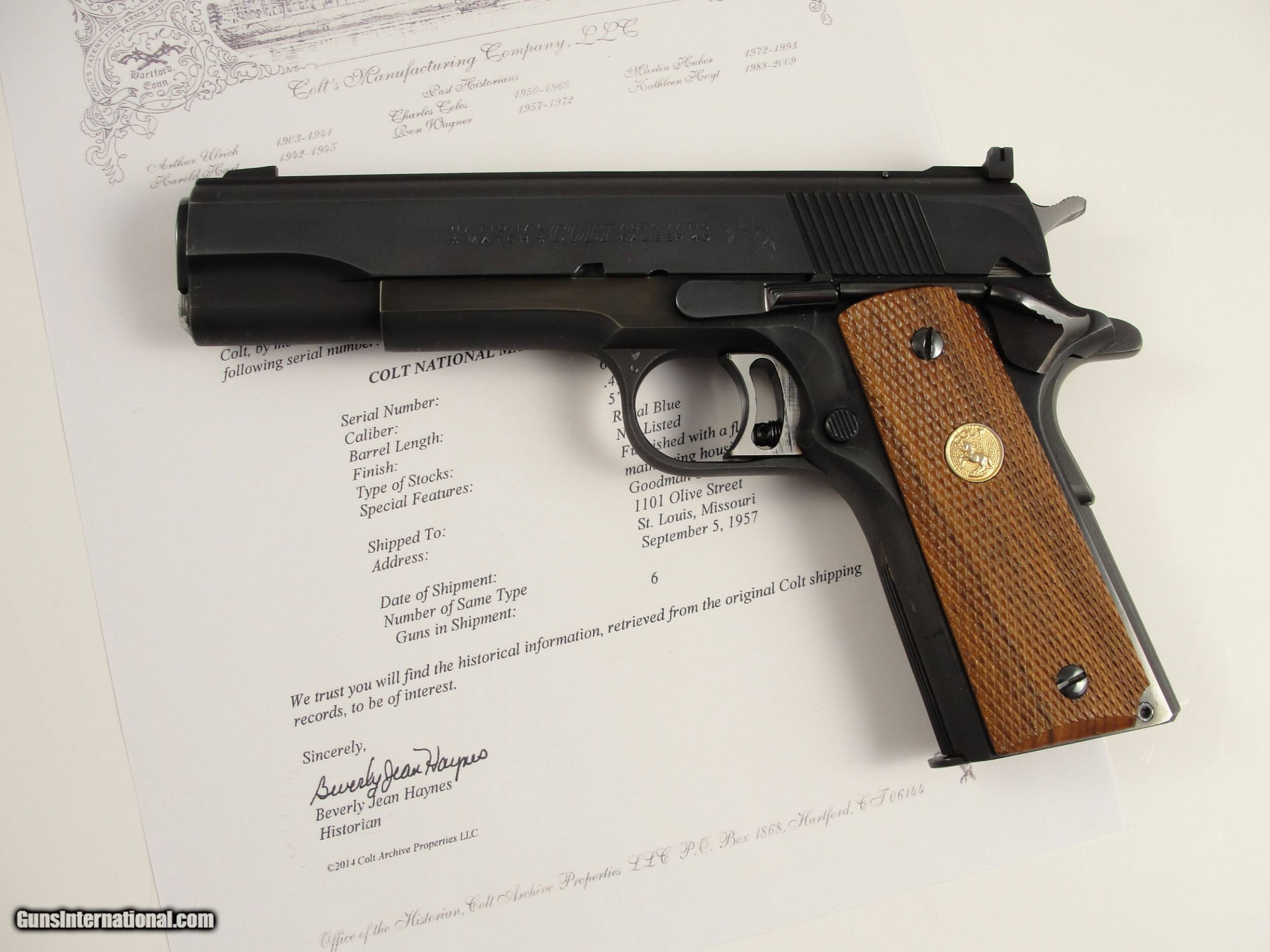 Pre-70 Series 1957 Colt Gold Cup National Match – 3 Digit serial # - First Year