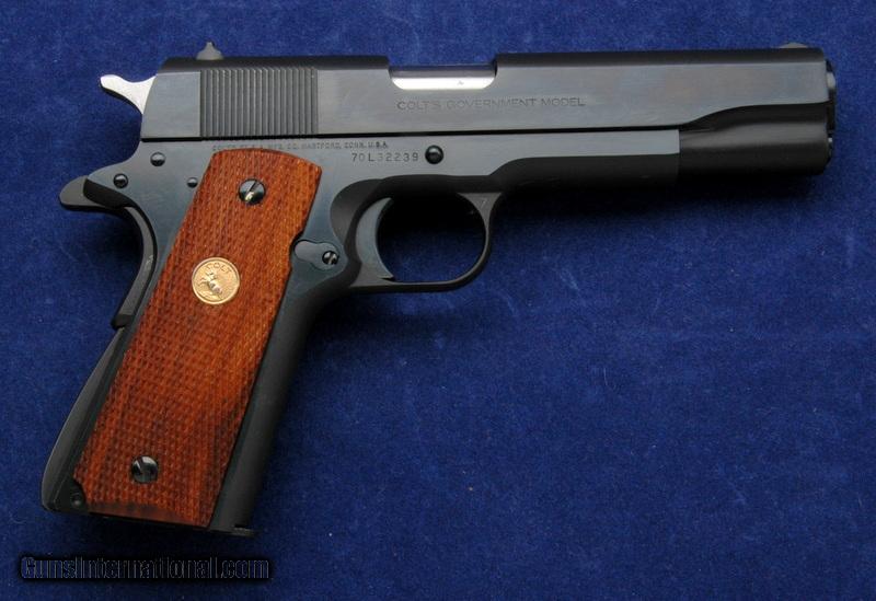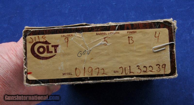 Description: Available for purchase is this gorgeous and all original Colt Series 70 1911 chambered in 9mm. Not current production, this is an original from the early 70's. Includes the original box and all inserts, manual and hang tag. If you look at the barrel hood, you can see how little this pistol has been cycled. Possibly unfired. Grips are mint, screws are mint, blue is mint, bore is mint. This one is truly collector grade. Impossible to upgrade this pistol. Maybe with a minty box- good luck with that! $35 shipping to the lower 48 and 3% surcharge for using a CC. SOLD |