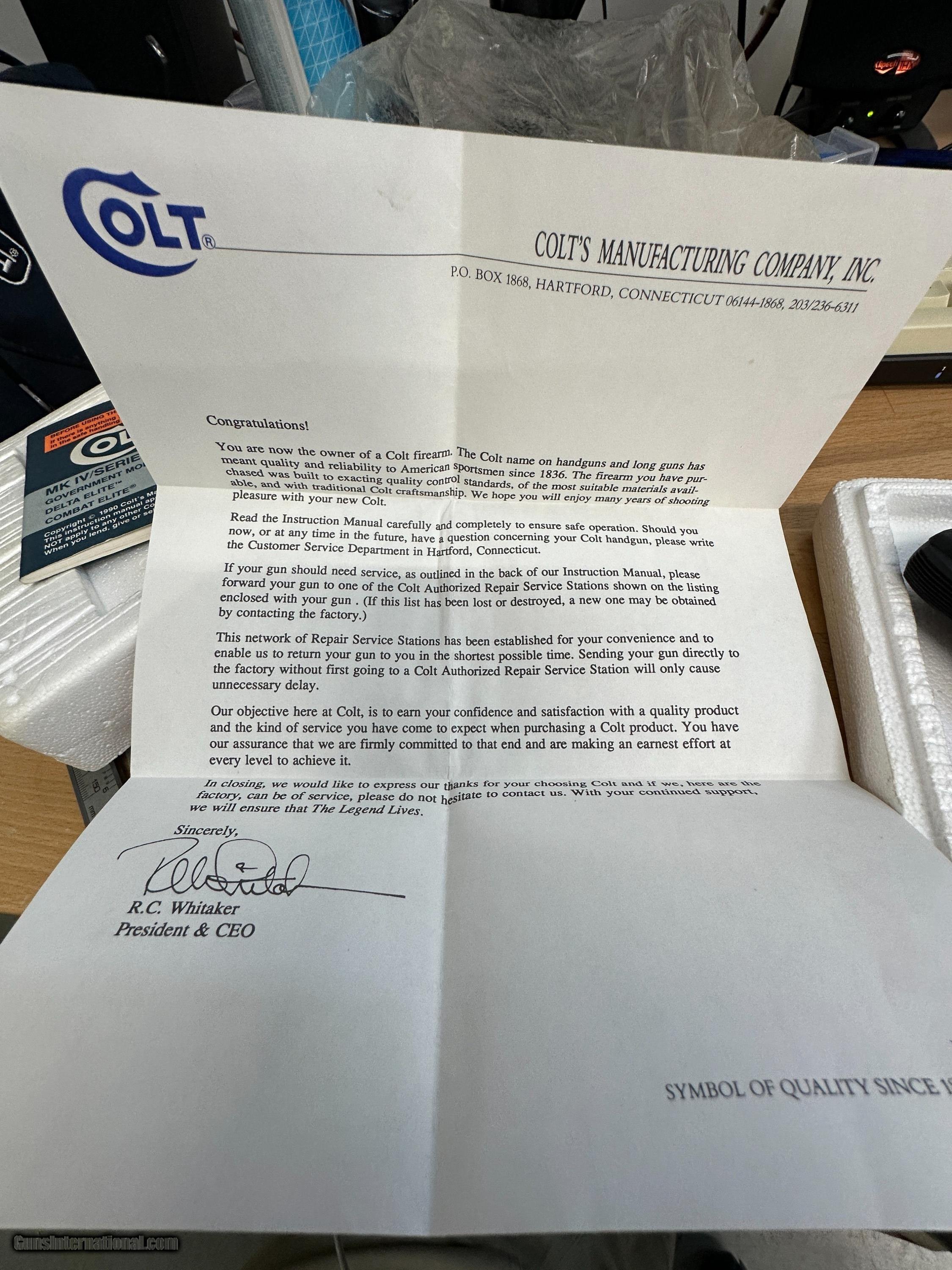 Unfired 1980 70's series colt 1911 comercial. Box matching serial and documentation.