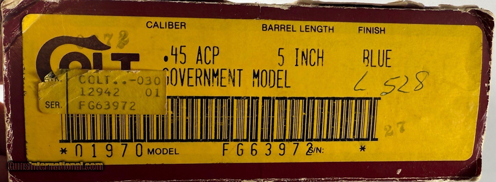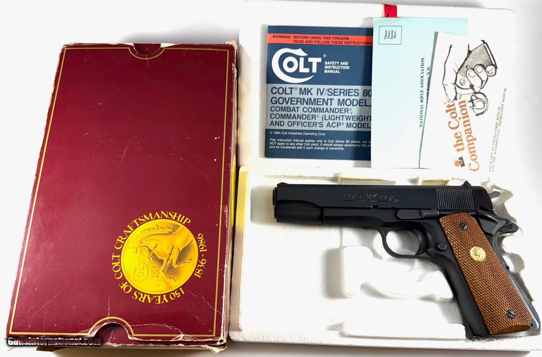 **FANTASTIC** 1987 Colt 1911 Government Series 80 45 ACP with original matching insert and sleeve. 99% Condition