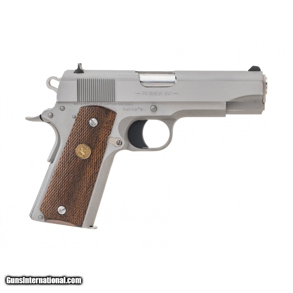 Description: " SN: CJ35946. Manufactured in 2008, .45ACP with a 4.25"" barrel. Stainless commander sized 1911 with commander style hammer. Overall very good plus condition. SOLD |