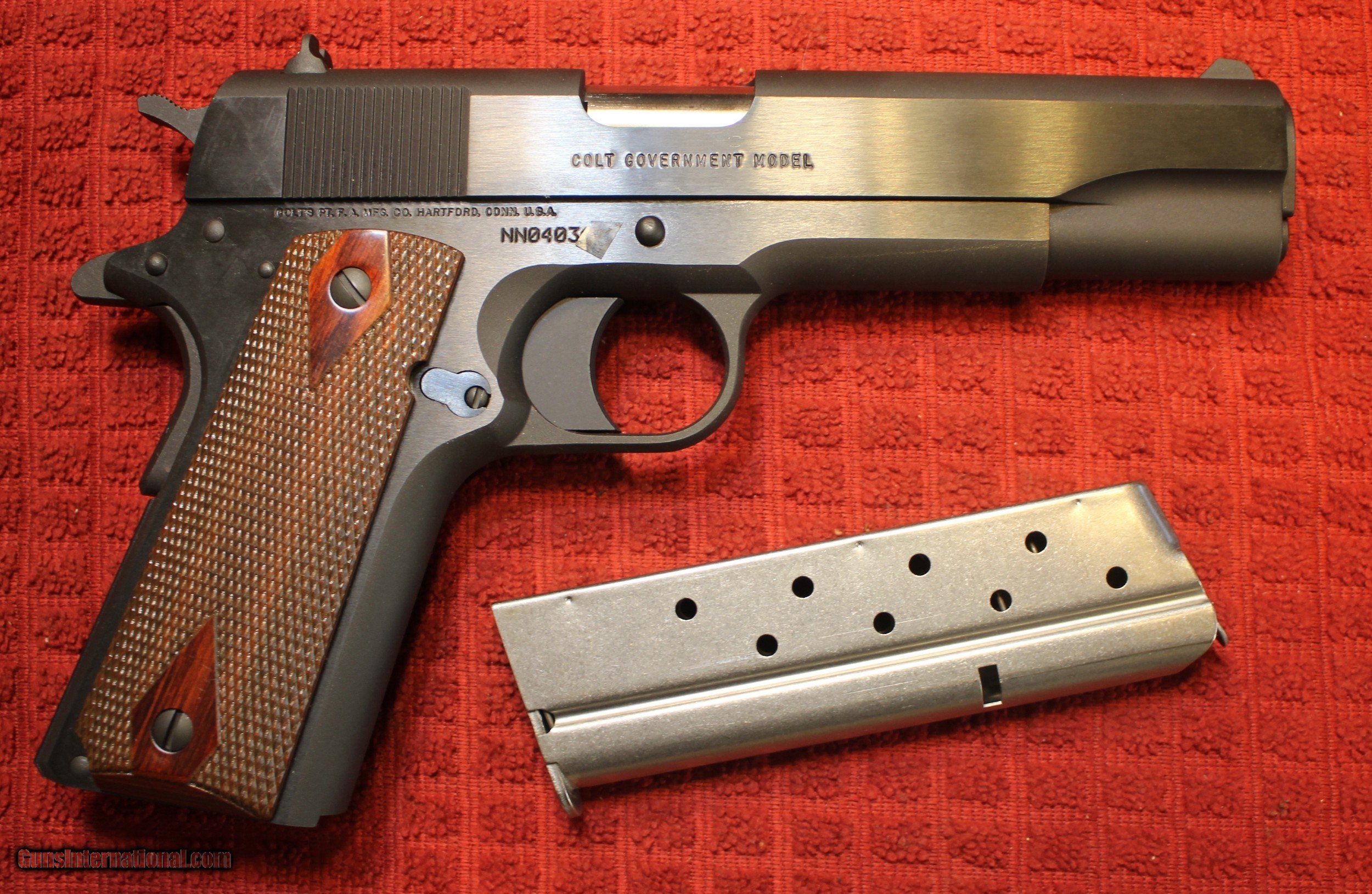 Description: Got a Colt 1911 9mm Series 80 with one magazine for sale. The last two numbers of the serial number are covered. This is a MODERN firearm and did not show in the Colt Serial Number look up. From our July road trip to AZ. Picked up some really nice one of a kind as well as base piece or three that will be listed as time permits. Pulled this Colt 1911 9mm Series 80 full size 1911. This has NOT been fired other than Colt. The pictures show no wear on the rails, bolt face as well as the hammer. We tried to get pictures of every maker's mark, logo, stamp, cartouche and whatever we could find. Look closely at the pictures as what you see is what you get. Please check the pictures to check condition. You are welcome to ask questions and ask for additional pictures for a specific area. Please check our other listings for the items. NOTE: Look close at the pictures posted As is means AS IS. There is no refund You are welcome to check out our webpage or facebook page at P&T Partners Shipping is included. Shipping is NOT FREE, Just included for UPS Next Day Air and full insurance. Price is for Certified Funds meaning Certified Check or USPS Money Orders Credit or Plastic in any form, shape or manner add 3.5% NOTE: Credit by PHONE only WE DO ACCEPT PERSONAL OR BUSINESS CHECKS, BUT THERE IS A GRACE PERIOD OF 10 BUSINESSS DAYS ON CHECKS FROM THE DATE OF DEPOSIT. I post on many of the firearms forums as PT-Partners. This is an FFL to FFL Transaction, as PT-Partners is a retail/FFL Dealer. For those that are local, there is no Face To Face. On Line means On Line General Information: FFL (Federal Firearms License) is required. Be prepared to obtain a copy of your local FFL holders license. For all in states where the local laws restrict this type of firearms, DO NOT BUY. If your local laws restrict the magazine capacity, again do not buy. I have no idea if this is a California Qualified Firearm, but I do ship to CA if you check other listings and something fits CA DOJ. If you are CA and you can PROVE, and your RECEIVING FFL contacts me, I will ship this to CA SOLD Handgun Caliber: 9x19mm Parabellum (9mm Luger, 9x19mm NATO) |