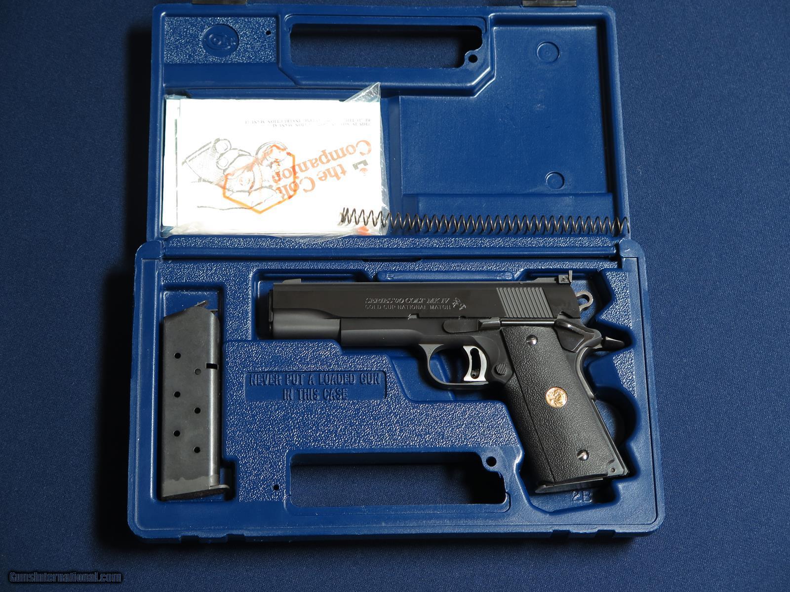 Description: Colt 1911 Gold Cup National Match 45 ACP. 80's seres. Looks unfired in case with papers. SOLD |
