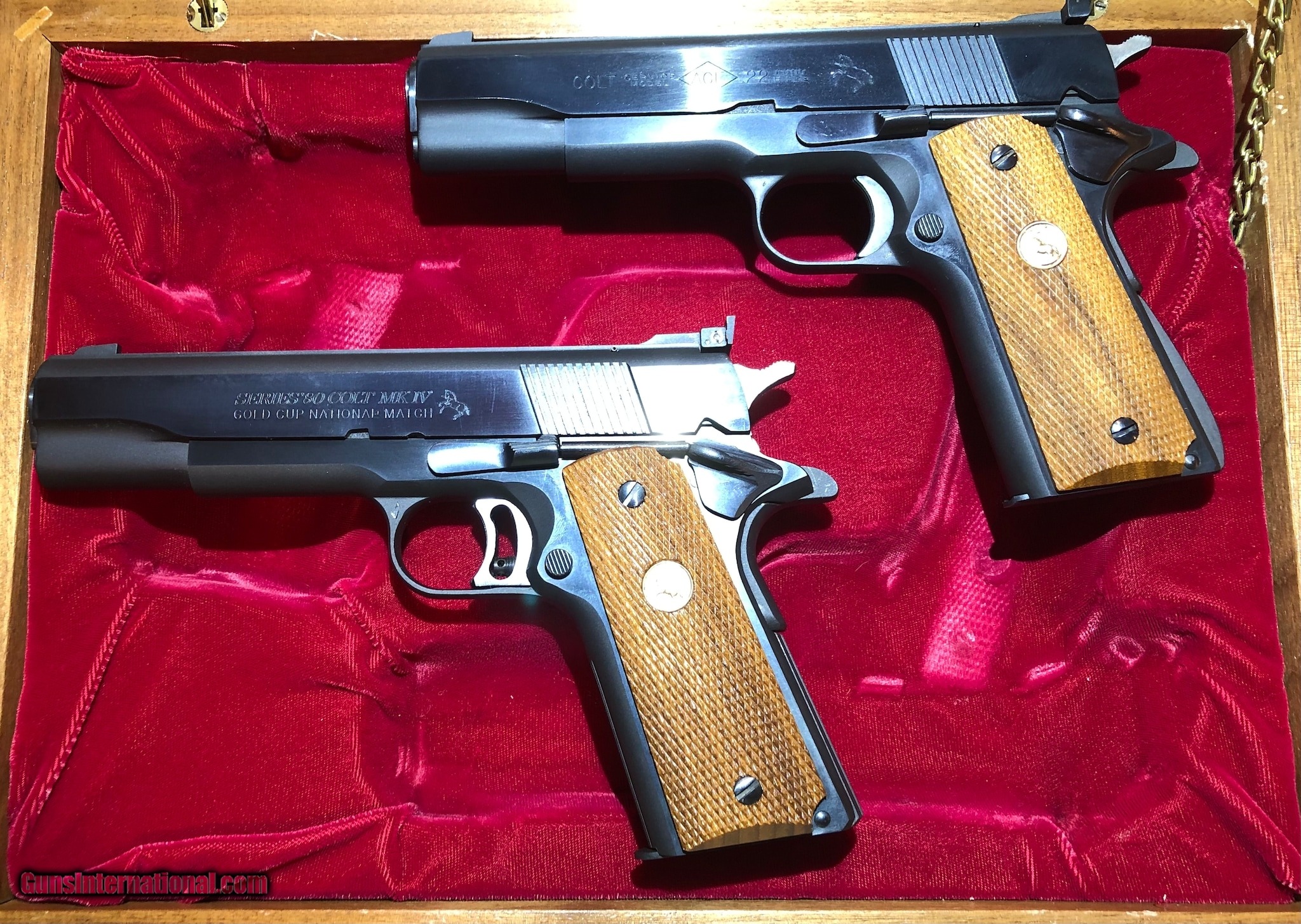 Description: Guns Listing ID: 256368 Selling as a set. Comes with the custom display case. Guns are in excellent shape. One Colt gold cup national match in 45 ACP and one Colt Ace in 22 LR. No muzzle wear guns are beautiful! Refer to photos for condition SOLD Manufacturer: COLT Model: 1911 Gold Cup National Match Series 80 MKIV Caliber Info: 45 ACP Condition: Used - Non-Certified Barrels: 5 BARREL Finish: WALNUT, BLUED |