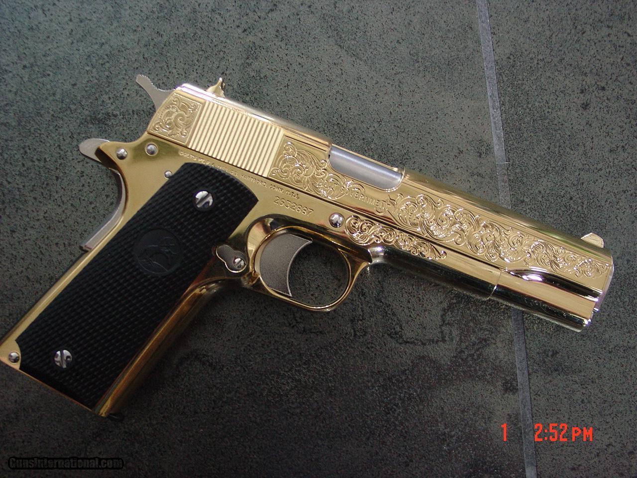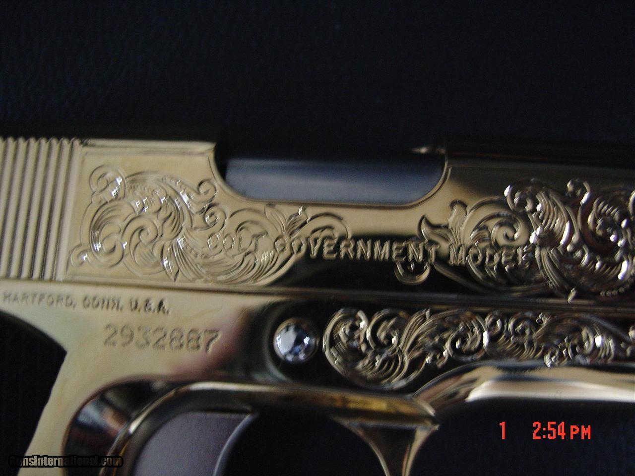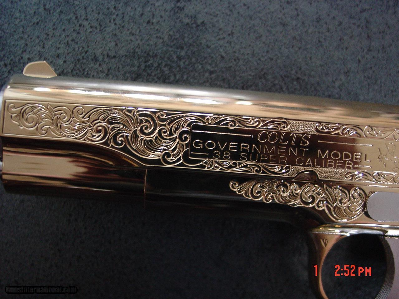 Colt 1911 Government,38 Super,fully 24K gold plated &master engraved by Seattle Engraving,never fired,box & manual-awesome showpiece !!