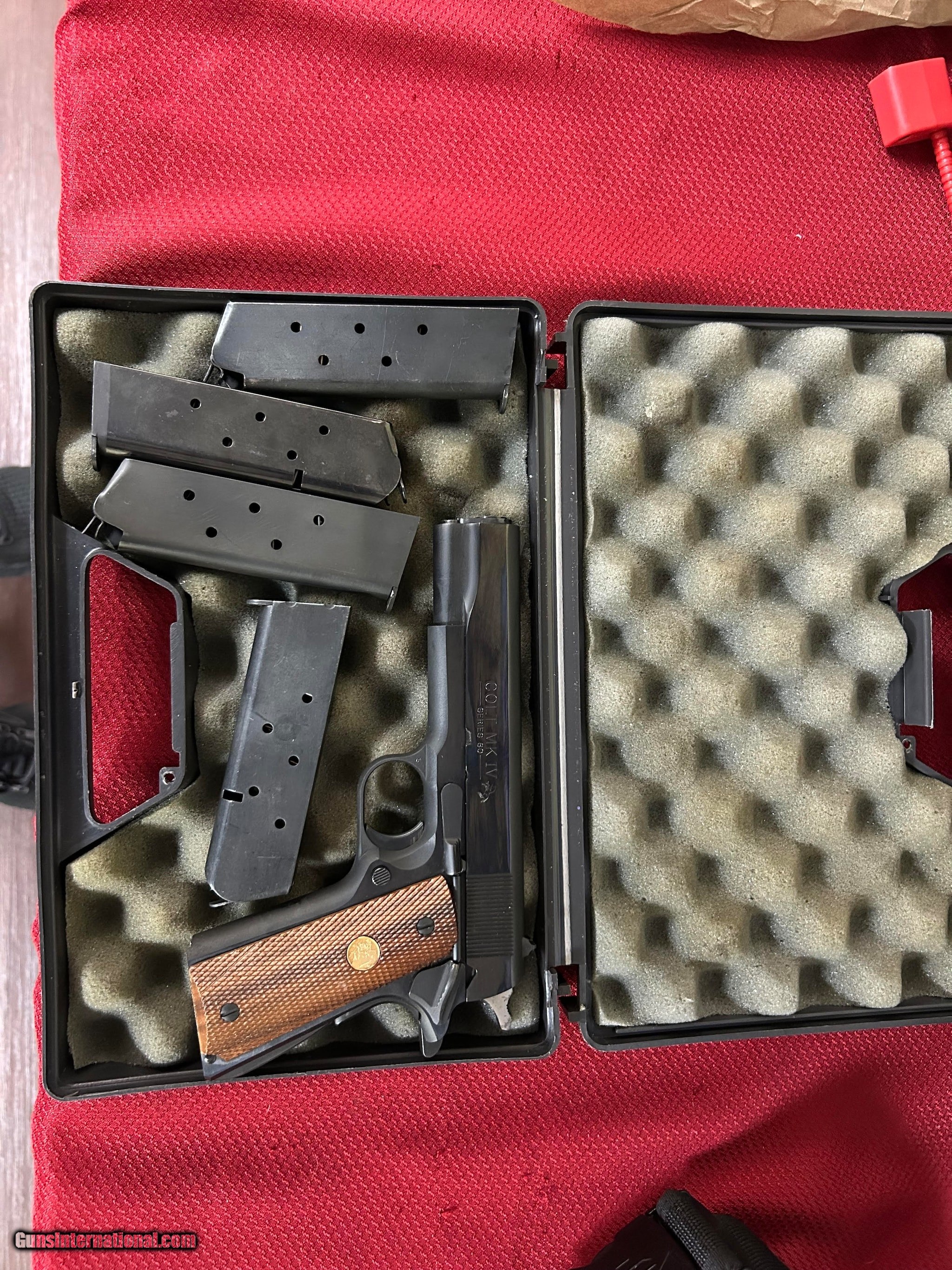 Description: Guns Listing ID: 1093242 I can‚‚t get over how clean this Colt is. Pre-owned, EXECELENT condition. COLT MKIV Series 80 Cartridge: .45 ACP. Action: Semi-automatic. Recoil operated. Weight: 2.34 lb. (1.06 kg.) Length: 8.5 in. (215.9 mm.) Barrel Length: 5 in. (127 mm.) Capacity: 7 rounds. 4 Mags Tota SOLD Manufacturer: COLT Model: 1911 GOVERNMENT MK IV SERIES 80 Caliber Info: .45 ACP Condition: Used - Non-Certified Barrels: 5 BARREL Finish: BLUE AND BLACK |