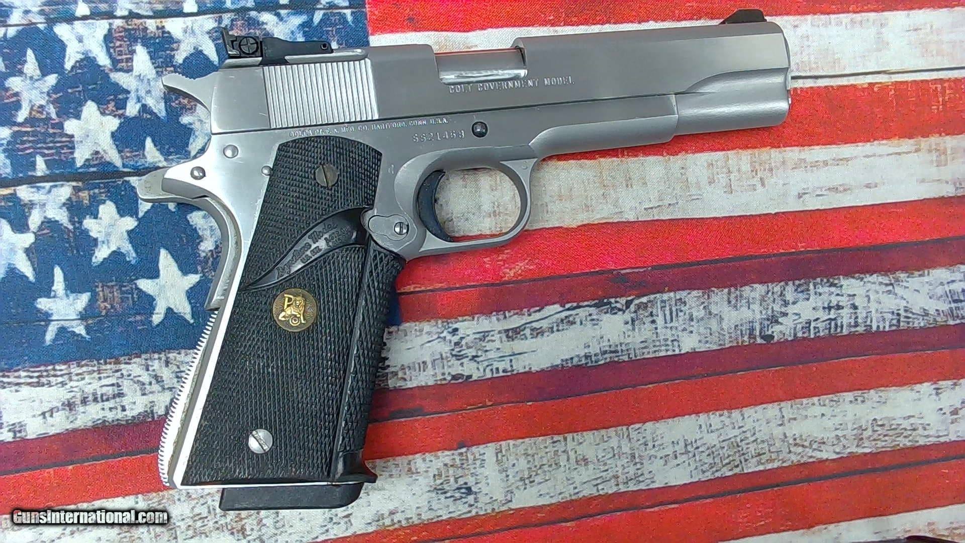 Description: Guns Listing ID: 984109 Looking for a classic? Here it is... A 1986 Colt 1911 Stainless Series 80, chambered in .45acp. While the overall condition of this firearm is good, it does have some scratches on the frame and the slide - see photo‚‚s. The grips are Pachmayr rubber grips and the magazine is made by Pachmayr. **Firearm as pictured - no original box SOLD Manufacturer: COLT Model: 1911 GOVERNMENT MK IV SERIES 80 Caliber Info: .45 ACP Condition: Used - Non-Certified Barrels: 5 BARREL Finish: STAINLESS |