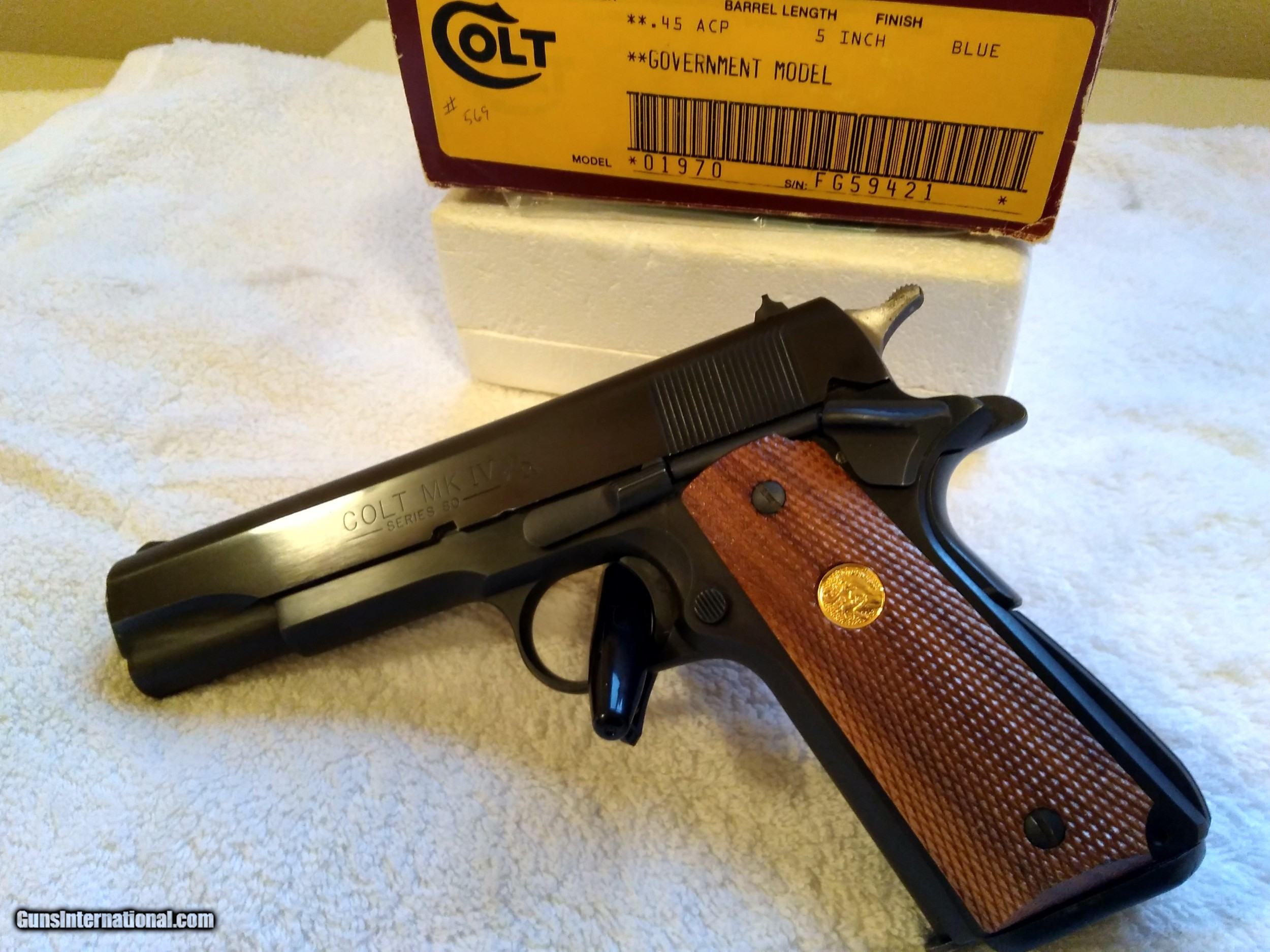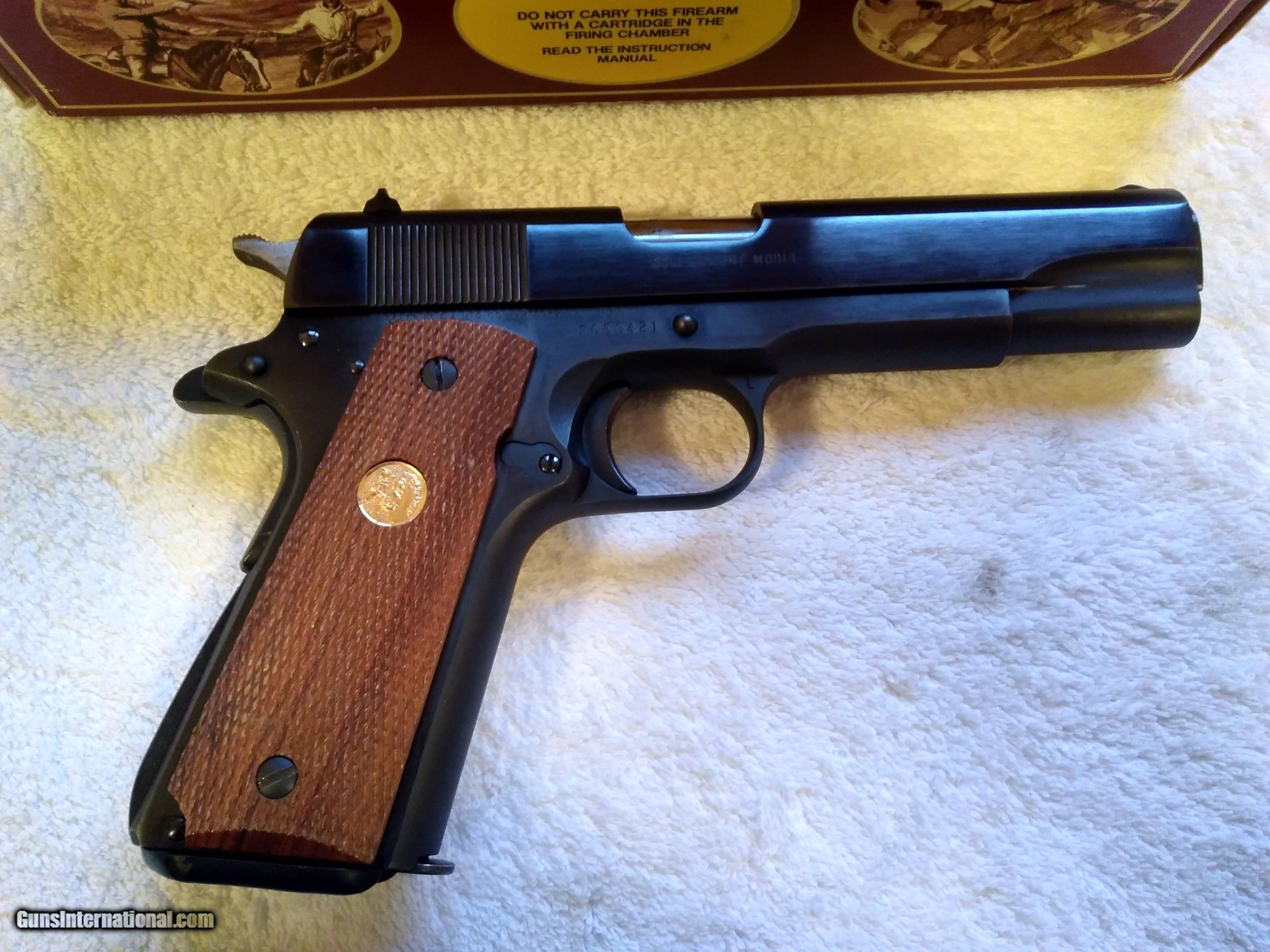 Description: For Sale: Colt Mark IV Series 80 in 45 ACP Government Model 1911 Style Gun is in Excellent Condition with little use. Blueing & Wood in Great condition Gun comes with factory Original Box and Manuals. Gun shoots good, all factory original. Asking $1295 or Offer Please call Hugh with question at 515-250-7136 Buyer must provide copy of FFL of dealer you want gun shipped too. Thanks for looking at my old pistol! SOLD Manufacturer: Colt Model: Government Model Series 80 Serial Number: FG59*** Caliber Info: 45 ACP Bore: Excellent Chambers: Clean Metal Condition: Excellent Wood Condition: Excellent Bore Condition: Bright with strong rifling Barrels: 5" Action: Single Triggers: Stock Sights: Factory fixed Notch & Blade Manufacture Date: 1970 p/bx 1986 p/Col Extras: Factory Box, Manual & 1 clip w/gun |