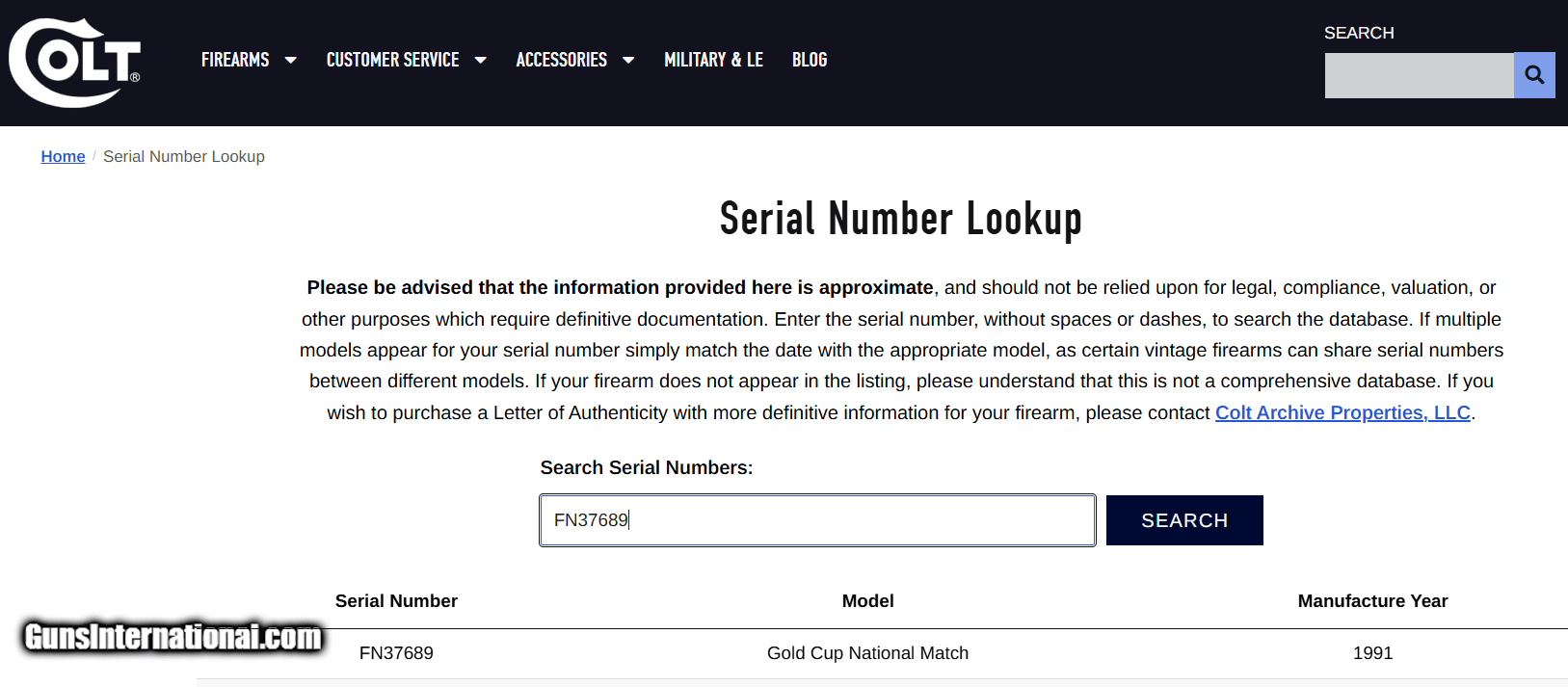 Description: Guns Listing ID: 497141 Colt 1911 Gold Cup National Match Series 80 MK IV .45 ACP MADE 1991. FACTORY BOX, 5\" BARREL STANDARD 1911 45 ACP 8 RD MAGAZINE REAR ADJ SIGHT, BLADE FRONT SIGHT, RUBBER GRIPS WITH GOLD (IN COLOR) COLT LOGO SOLD Manufacturer: COLT Model: 1911 SERIES 80 GOLD CUP NTL MATCH Caliber Info: .45 ACP Condition: Used - Non-Certified Barrels: 5 BARREL Action: SEMI AUTOMATIC Finish: blued |