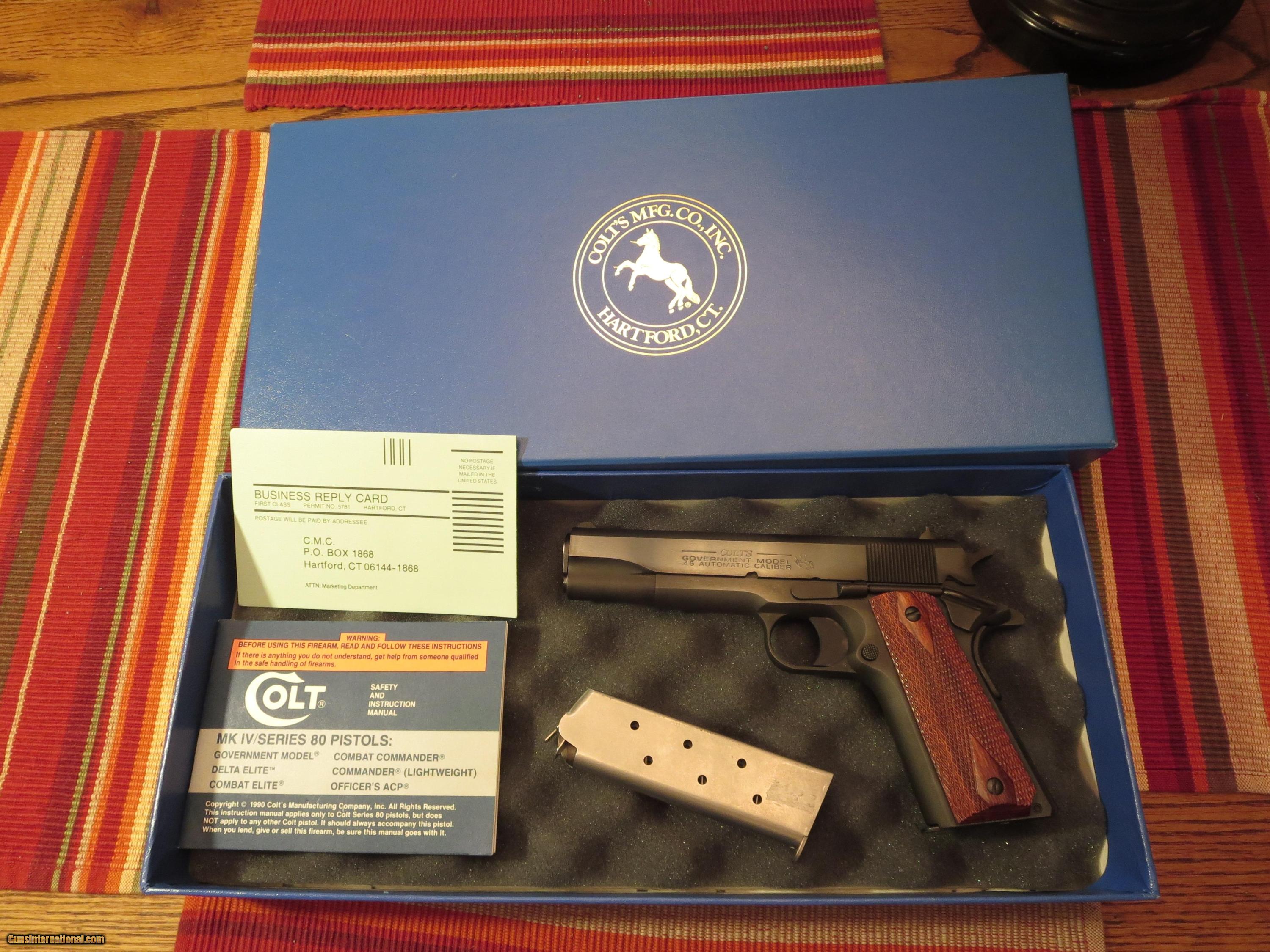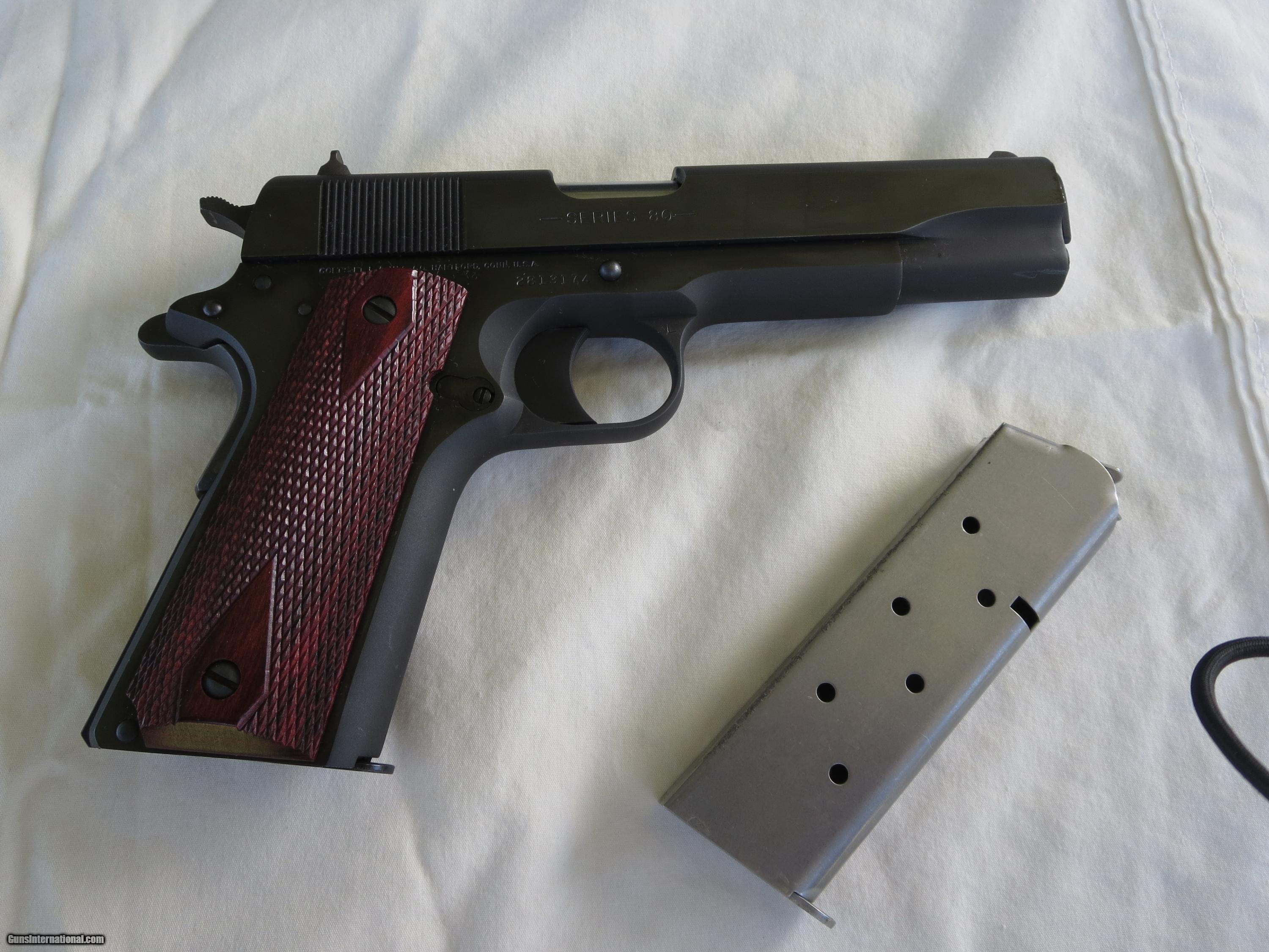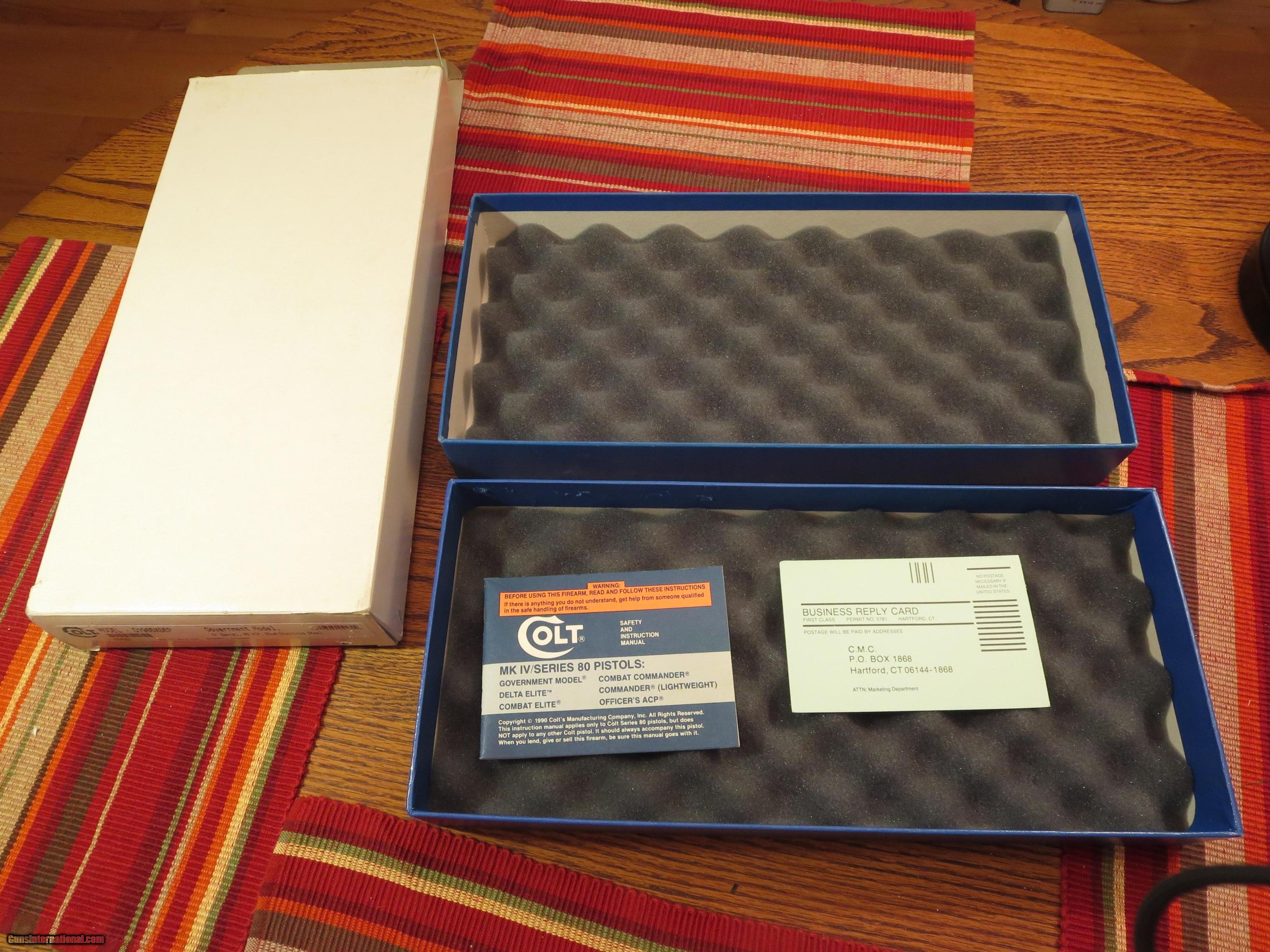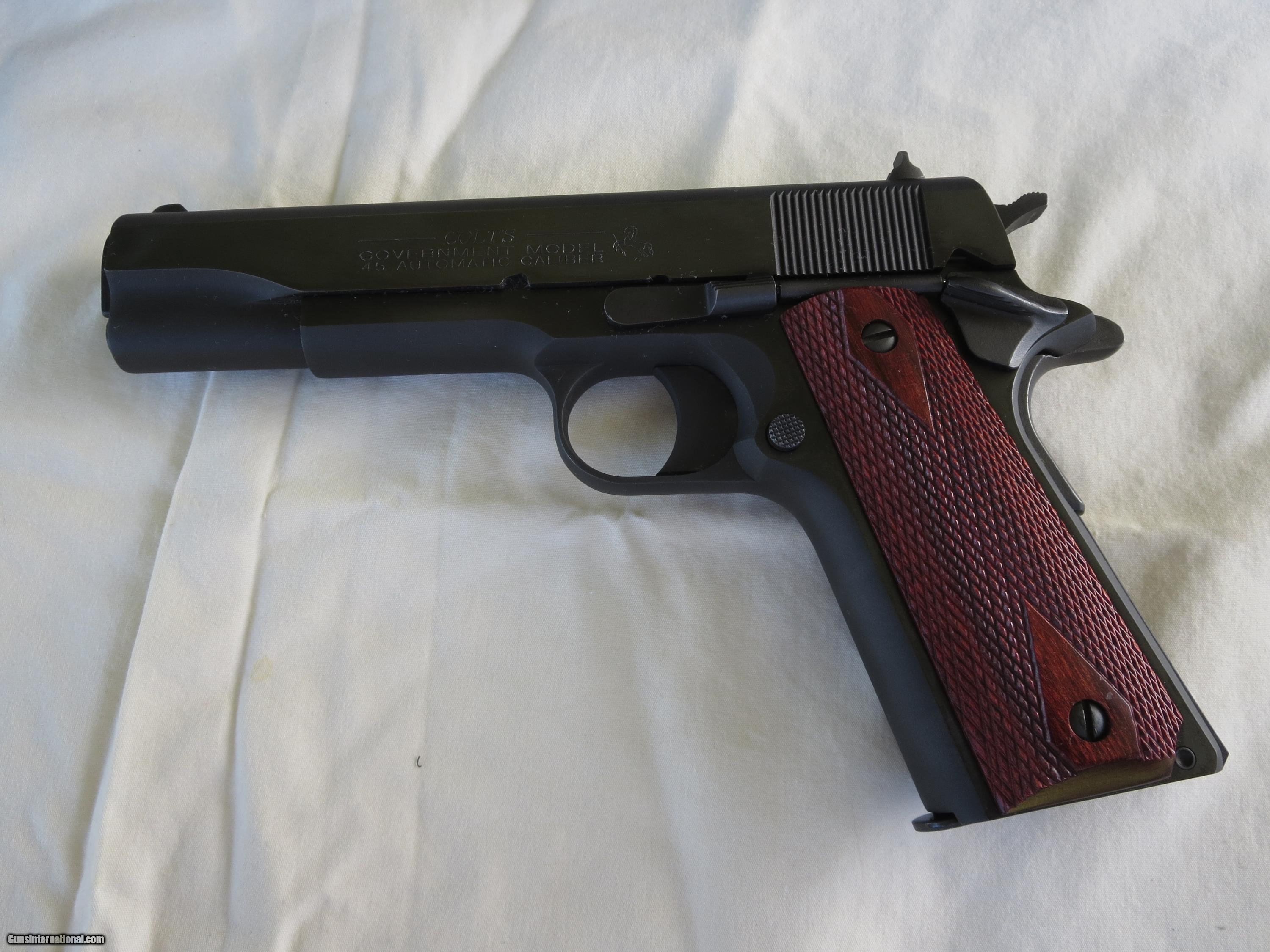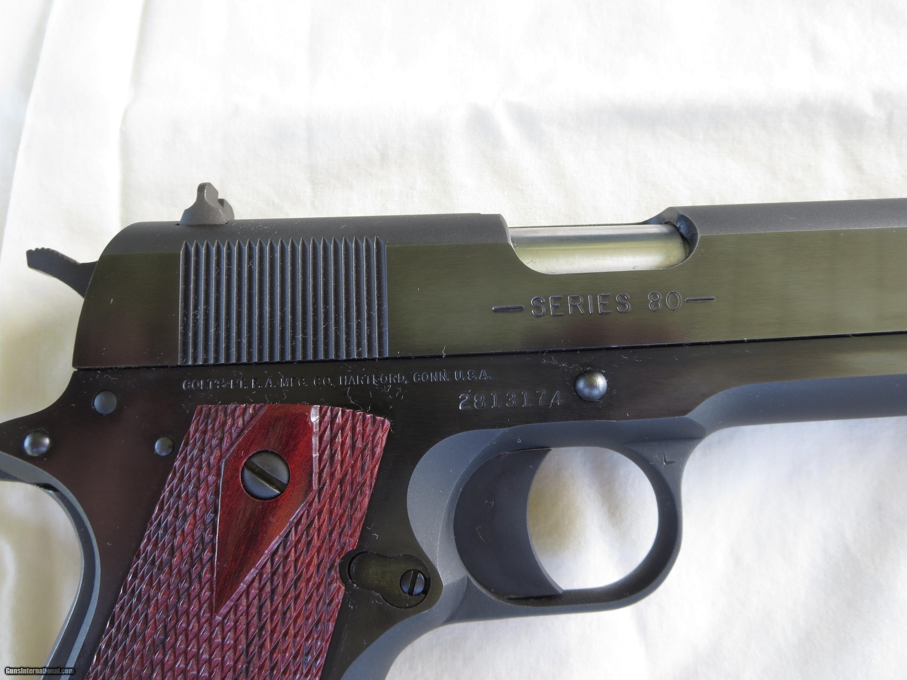 Description: SALE PENDING NEW LAYAWAY PLANS AVAILABLE. Can email simple/honest options. Like New w/Colt Custom Box 2004 mfg Colt 1911 Series 80 semi-auto pistol. 99.9% blue condition with immaculate grips. Bore is in perfect condition: mirror shiny with excellent lands and rifling. This pistol has been shot only a few times. Includes one OEM and one Chip McCormick Shooting Star 8 round magazines. Original Colt Rosewood grips. Please review the photos to see for yourself the condition of this firearm. Slight smudge marks in photos are from thin layer of oil applied to finish. Excellent price for such a great Colt firearm. Shipping only to FFL in states that legally allow it. No sales to CA. HI and AK is extra shipping cost. SOLD Manufacturer: Colt Model: 1911 Series 80 Serial Number: 2813174 Caliber Info: 45 ACP Condition: Excellent Metal Condition: Excellent Wood Condition: Excellent Bore Condition: Excellent Sights: Colt Manufacture Date: 2004 Extras: magazine |