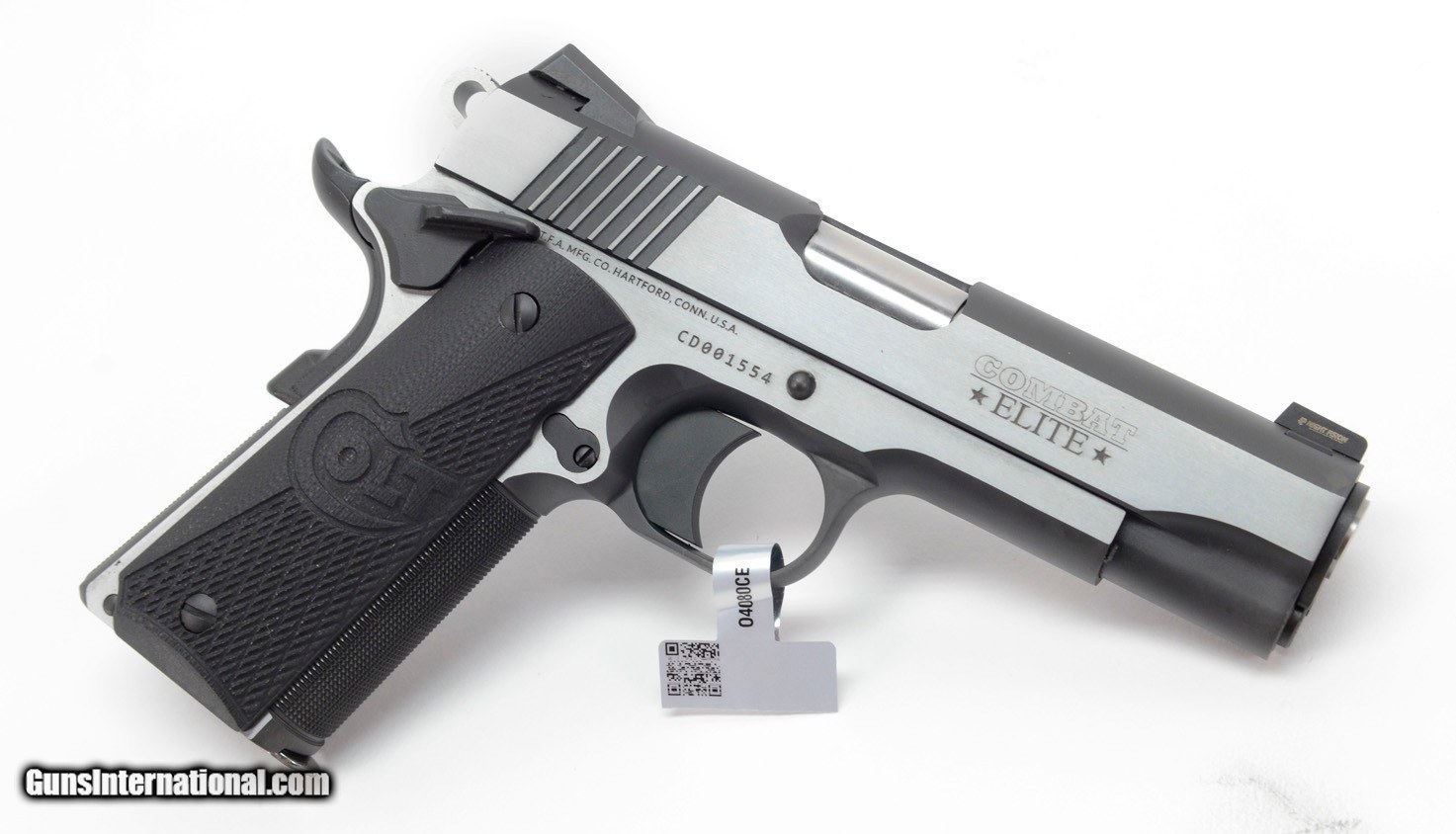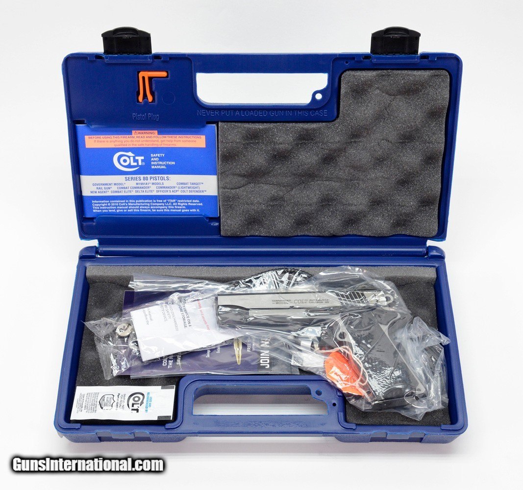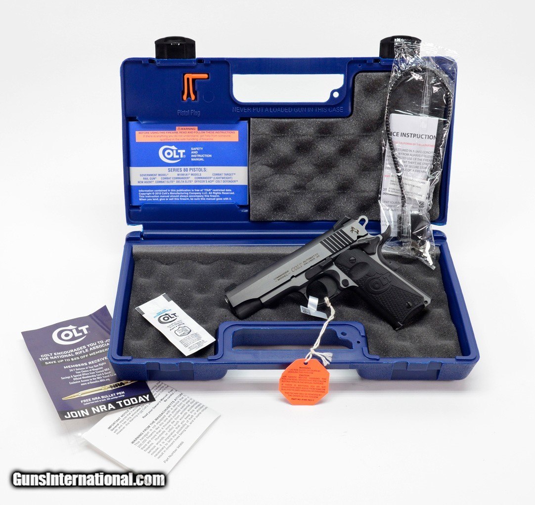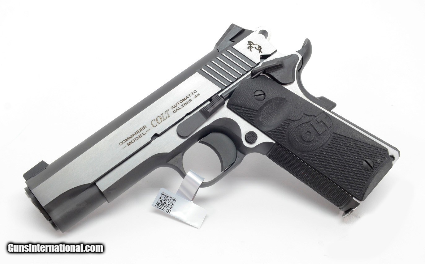 Description: Colt Combat Elite Government 4.25 Inch .45 ACP. Series 80. Stainless Finish. BRAND NEW in Hard Case. AVAILABLE FOR PURCHASE AT OUR ON-LINE STORE The Combat Elite is back! The Combat Elite family returns for 2018 as a modern styled Sided Two Tone pistol packed with premium features. 25LPI Checkered, Night Sights, and Ambi Safety make for a top shelf pistol that's ready to hit the range. This Commander version features a 4.25" Barrel in the classic 45ACP. Features