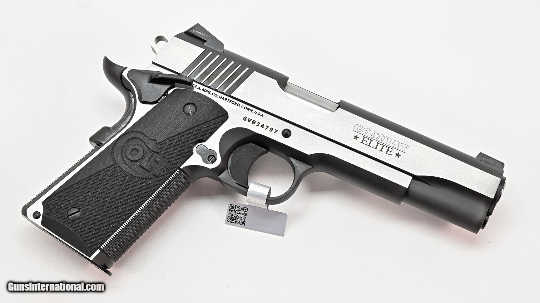 Description: Colt Combat Elite Government 5 Inch .45 ACP. O1070CE. Series 80. Stainless Finish. BRAND NEW AVAILABLE FOR PURCHASE AT OUR ON-LINE STORE The Colt M1911 pistol has been a favorite for 100 years as a service pistol, law enforcement pistol, and personal defense firearm. This pistol features G10 grips, an upswept beavertail grip safety and an ambidextrous thumb safety. MODEL O1070CE In Blue Hard Case Ad May Use Stock Images. This Firearm Serial Number Is: GV034842 SPECIFICATIONS