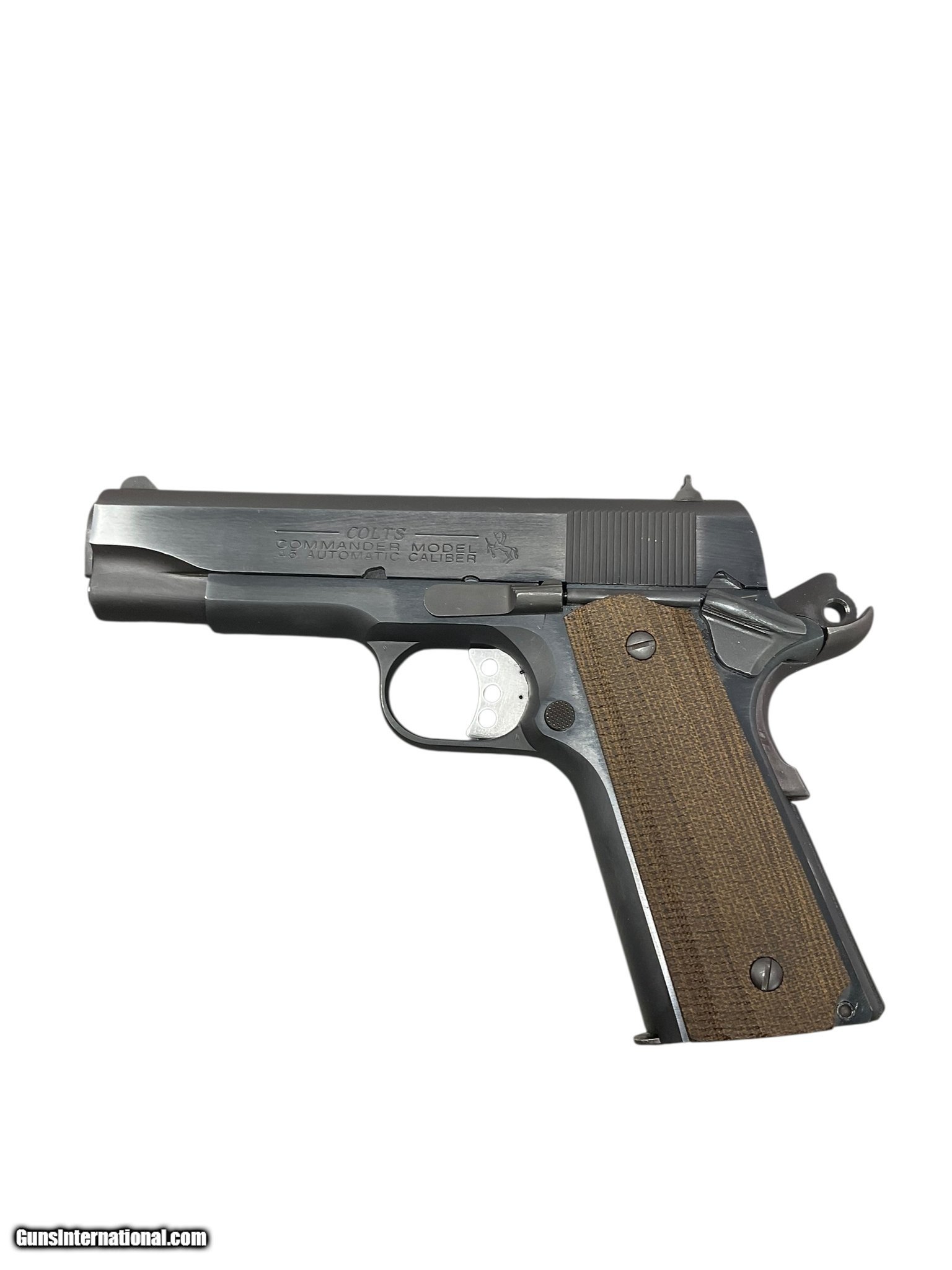 Description: Guns Listing ID: 572574 Gun only and has slight wear and tear SOLD Manufacturer: COLT Model: COMMANDER PLUS SERIES 80 Caliber Info: .45 ACP Condition: Used - Non-Certified Barrels: 4" BARREL Action: SEMI AUTOMATIC Finish: blued |