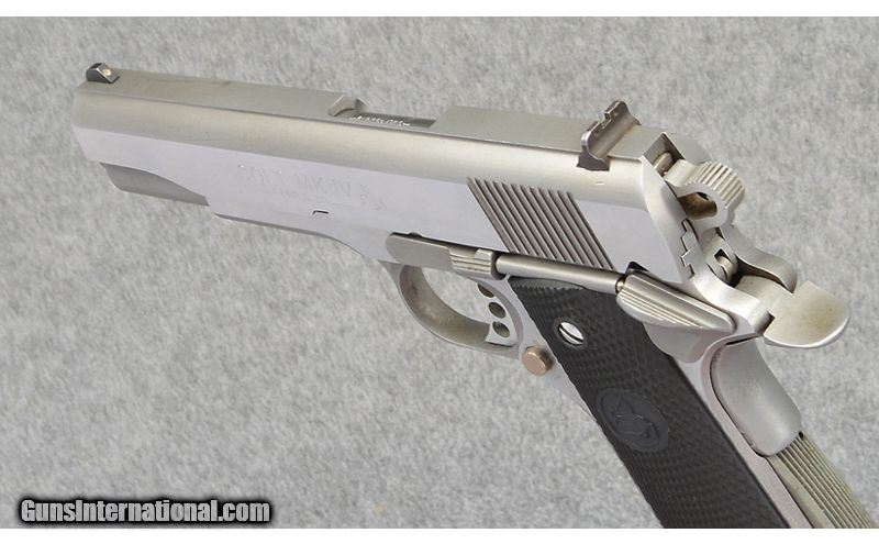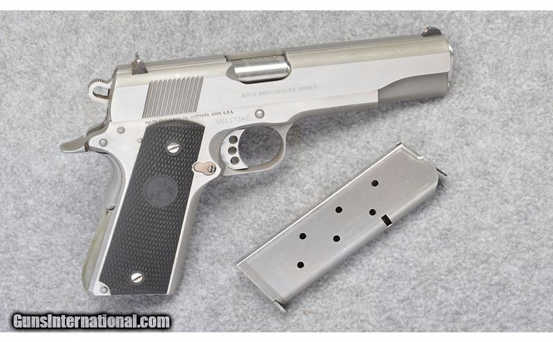 Description: Colt Series 80 Stainless with Colt polymer grip panels. Solid, full-sized 1911 shows scattered scratches. .45 Auto SOLD Metal Condition: Stainless Steel Bore Condition: Bright Sharp Barrels: 5 Inch Triggers: Adjustable Weight: 38 oz. Sights: Fixed Item Location: Buda, TX |