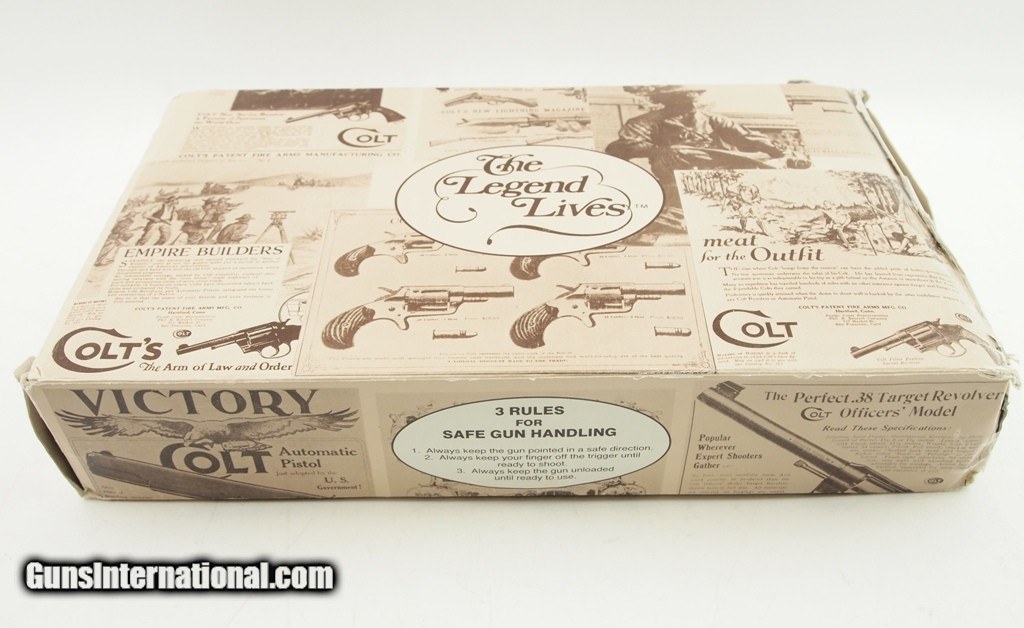 Description: Colt M1911A1 Commander .45 ACP WBox, 4" bbl, bright shiny bore, good rifling, black finish, dovetail notch rear sight, ramp front sight, one 8 round magazine, and black checkered grips with Rampant Colt logo. This pistol appears to be unfired. Add 3% for Credit Card Shipping $30.00 SOLD |