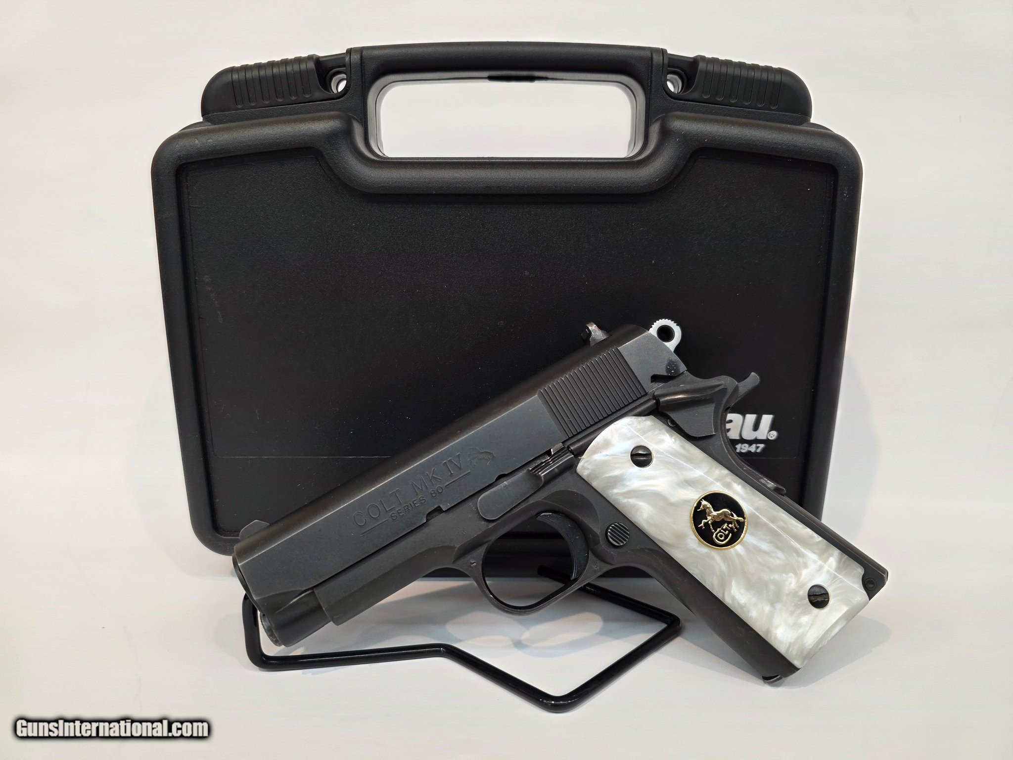 Description: Guns Listing ID: 582473 Colt MK IV Series 80 chambered in .45ACP. This comes with a hard case. SOLD Manufacturer: COLT Model: MK IV Series 80 Caliber Info: .45 ACP Condition: Used - Non-Certified Barrels: 3.5" BARREL Action: SEMI AUTOMATIC Finish: blued |