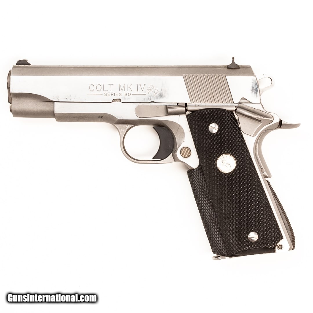 Description: Guns Listing ID: 887314 The Colt MK IV Series 80 Commander is designed off the classic 1911. It would make a great pistol for personal protection or home defense. This MK IV Series 80 Commander features a safety and includes six 7-round magazines. Get the best bang for your buck when you get a Certified Used Firearm . When you see the Certified Used stamp on any of our firearms, you can be confident that you’re getting exactly what you want – a gun only in very good to excellent condition and held to the highest quality standard. All Certified Used Guns come with a ‘no questions asked’ return policy . PLUS, ALL CERTIFIED USED GUNS SHIP FREE! SOLD Manufacturer: COLT Model: MK IV SERIES 80 COMMANDER Caliber Info: .45 ACP Condition: Used - Certified Barrels: 4.3 BARREL Finish: STAINLESS |