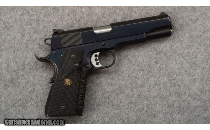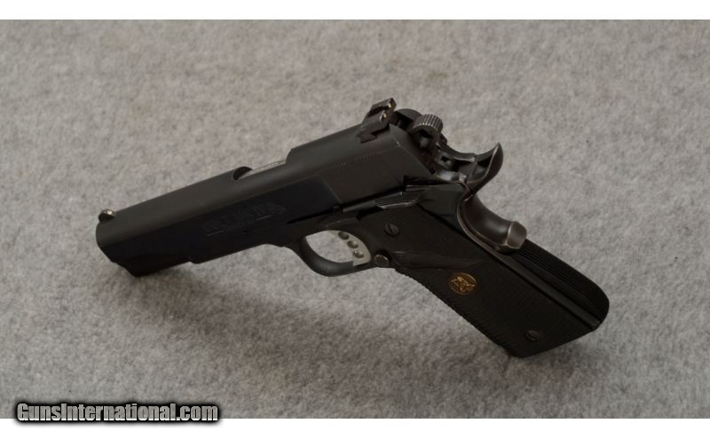 Description: SOLD Caliber Info: .45 ACP Metal Condition: Good Plus with light wear. Wood Condition: Grips: Very good. Bore Condition: Very good. Barrels: 5 Triggers: Adjustable. Stock: Pachmayr rubber grips. Weight: 2.5 Lbs. Sights: Front blade with white dot, rear notched with white dots. Extras: One Colt magazine, one only. Item Location: Boise, ID |