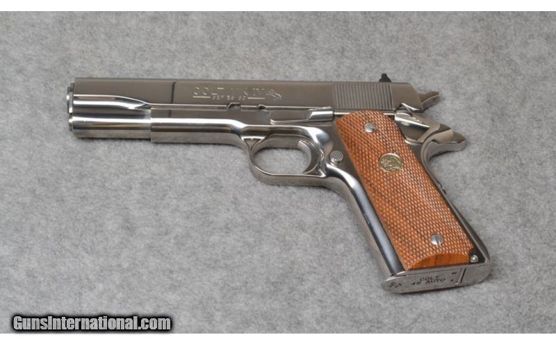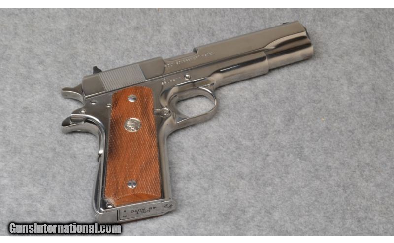 Description: With factory box SOLD Manufacturer: S/N SS16XXX Caliber Info: .45 Auto Metal Condition: Ultimate Stainless with a Few Light Scratches Wood Condition: Very Good, No Marks Bore Condition: Very Good Barrels: 5 Triggers: Factory Stock: Colt Checkered Walnut Grips Weight: 40 oz Sights: Blade Front/Fixed Rear Item Location: Columbus, OH |