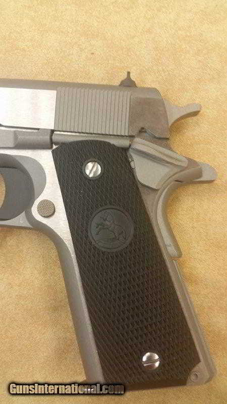 Description: The 1991 Series is a direct descendant of John Moses Browning's iconic 1911 design. Series upgrades include white dot sights and a lowered ejection port for improved reliability, while the original long trigger, flat mainspring housing and recoil spring system are retained. This model is chambered in 9mm and features a spur hammer, solid aluminum trigger, and standard grip safety and safety lock. Specifications and Features: 9mm Luger Single action only semi automatic 5" barrel Series 80 firing system 9 rounds capacity Lowered ejection port Standard safety lock and grip safety Solid aluminum trigger Composite grip panels Overall length 8.5" Weight 34.5 oz Brushed stainless steel If you need more info or photos contact us. There is a 6.75% sales tax for residents of Texas. We are a FFL Dealer so please be aware of your Federal & State laws before buying. Buyer pays exact shipping. SOLD |