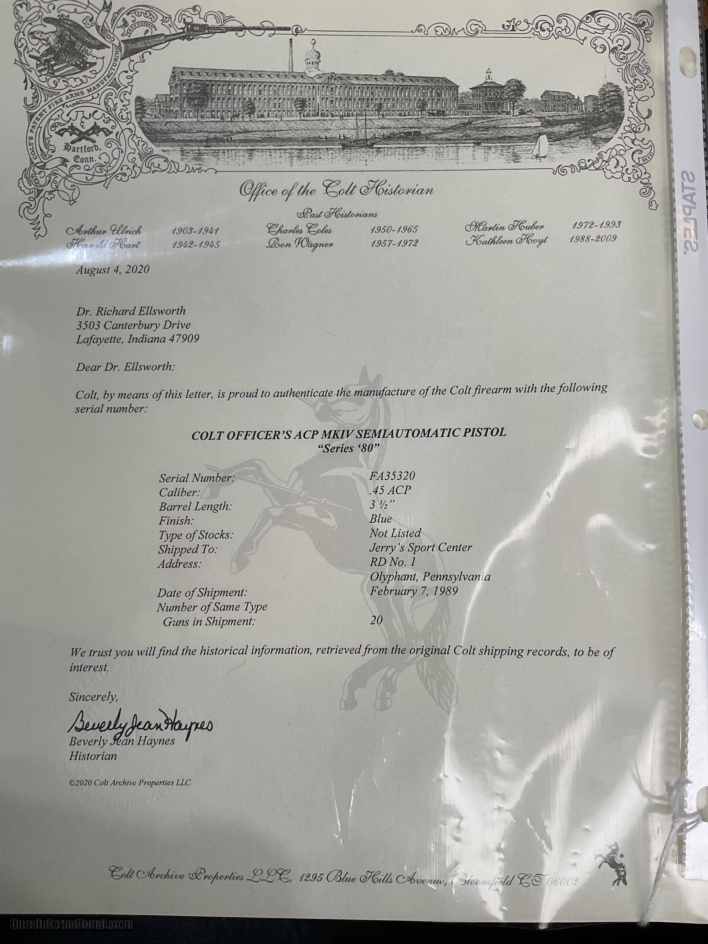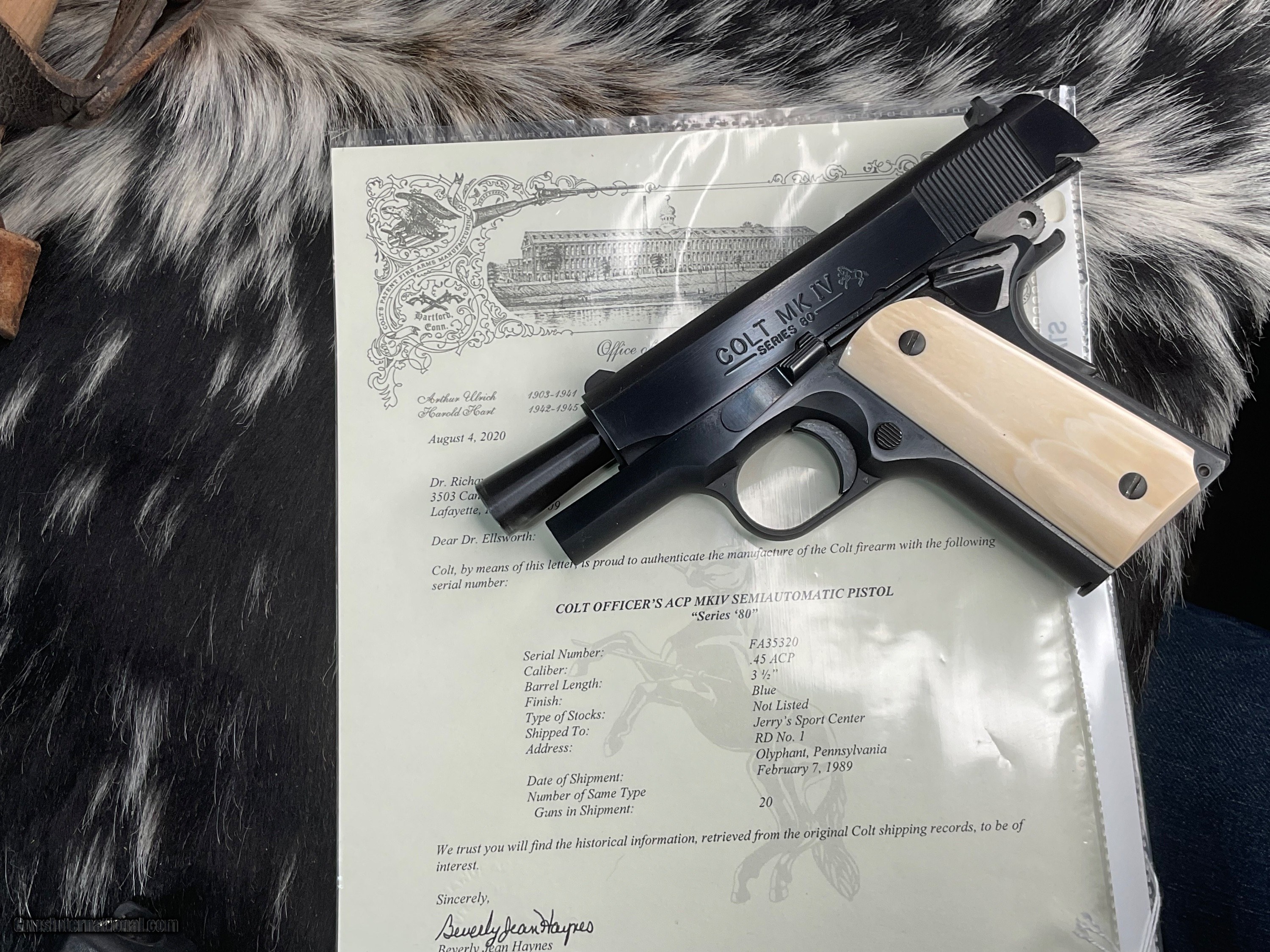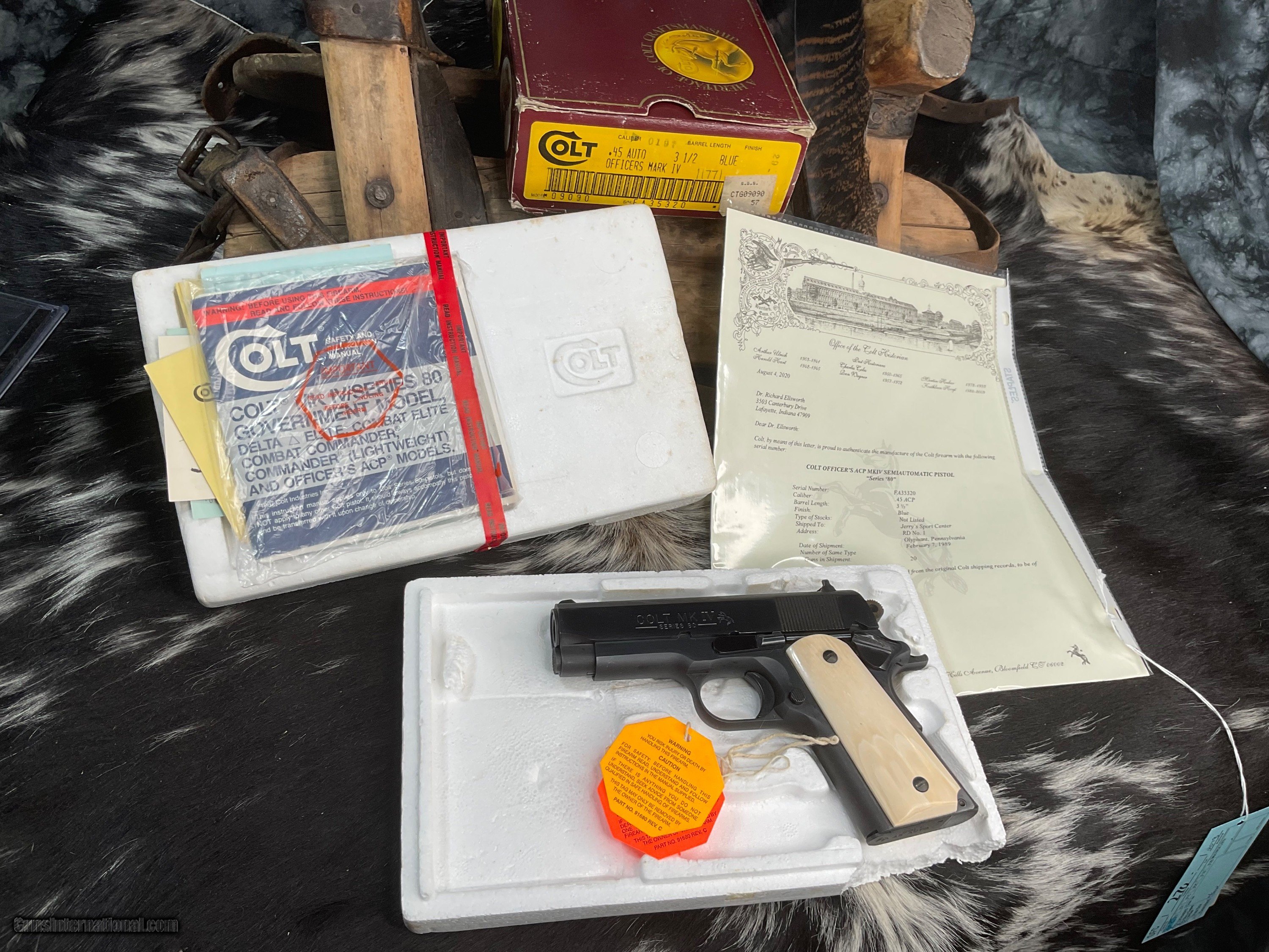 Colt Officers ACP Model, .45 acp, Ivory Grips, Colt Archives Letter, Boxed, Gorgeous, Trades Welcome!