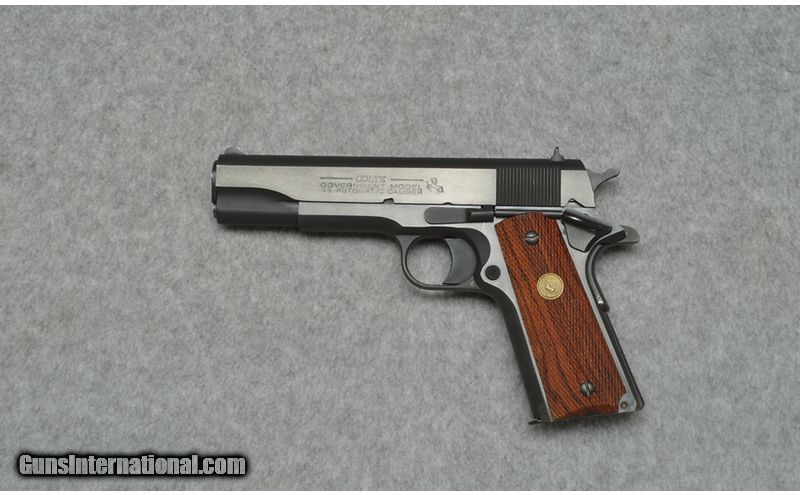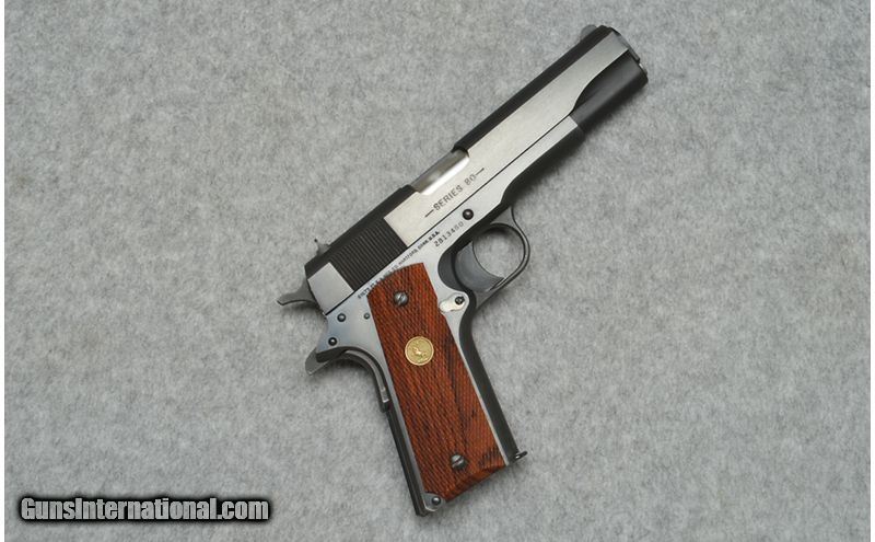 Description: Colt Series 80 Government Model in 45 ACP Caliber. Semi-automatic pistol with 5" barrel and blued carbon steel frame. The Series 80 Government pistols feature high profile sights with dots, a lowered ejection port for extra reliability, a spur hammer, solid aluminum trigger, a standard safety lock, and a standard grip safety. It appears to have seen little use and is in very good condition. .45 Auto SOLD Metal Condition: Very Good Wood Condition: Very Good Bore Condition: Excellent Barrels: 5 inch Weight: 2 lb Sights: High profile sights with dots Item Location: League City, TX |