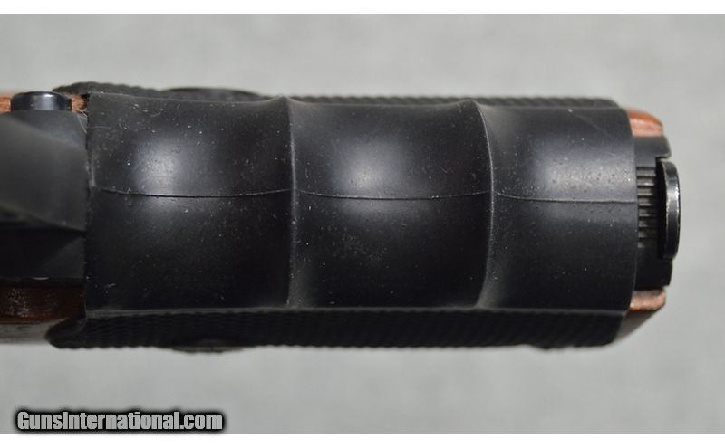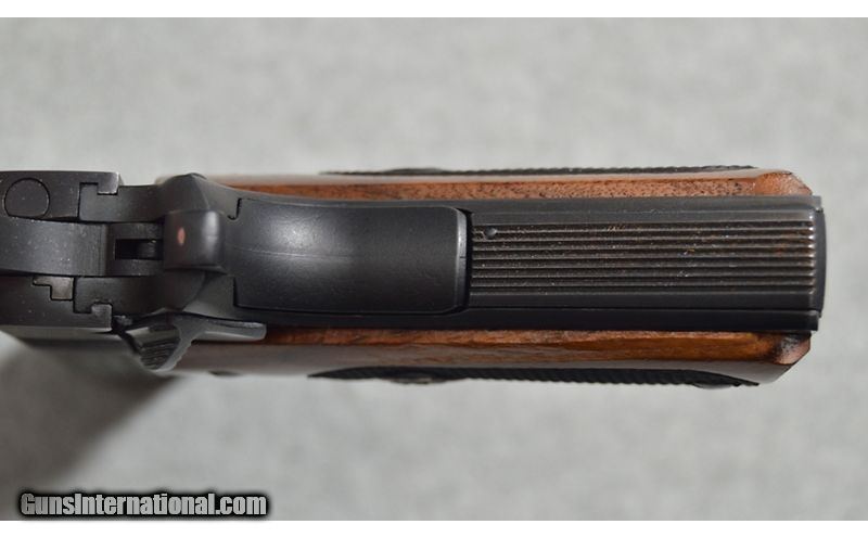 Description: Colt Series' 80 MK IV Gold Cup National Match chambered in .45 Auto is in excellent condition. It was manufactured in 1984. It features a 5" blued barrel, adjustable rear sight, and wooden grips with rubber finger slots. It shows minor handling marks. SN: FN09291 .45 Auto SOLD Metal Condition: Excellent condition with handling marks Wood Condition: Excellent condition Bore Condition: Clean and shiny Barrels: 5 Butt Pad: Wooden grips with rubber finger slots Weight: 2lbs 6oz Sights: Adjustable rear sight Item Location: Fort Worth, TX |