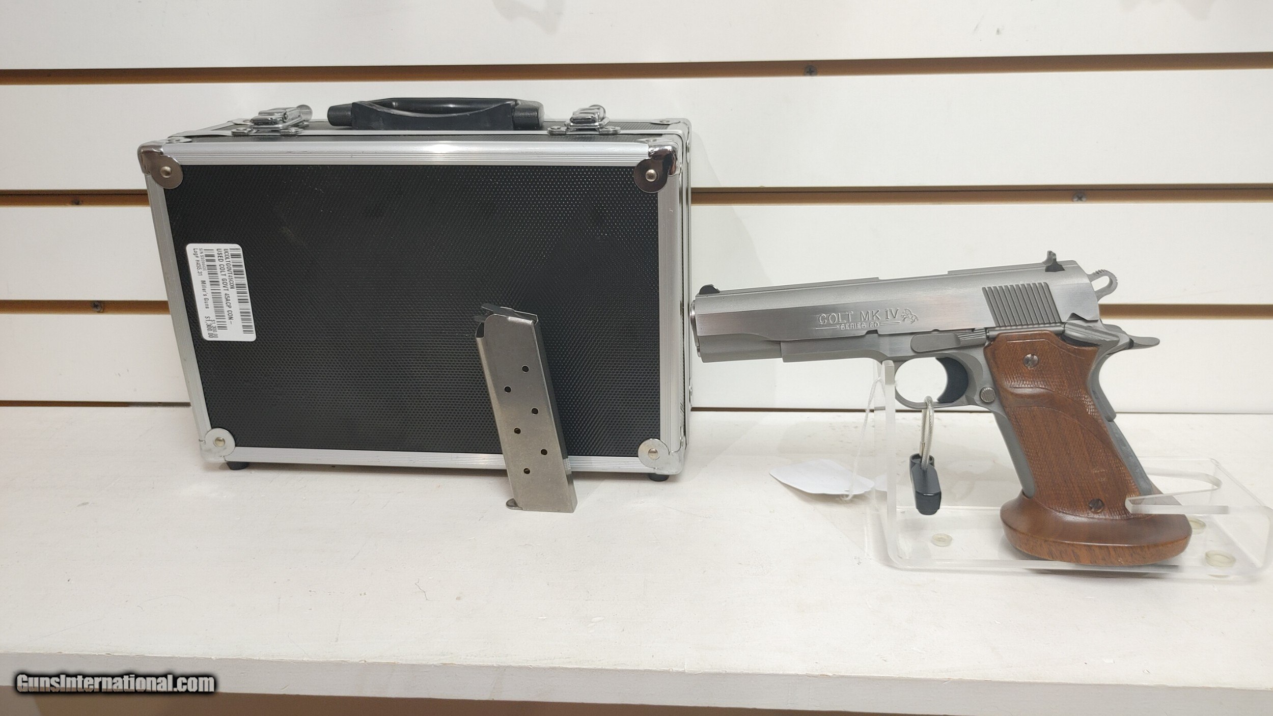 Description: Lightly used Colt Govt 45ACP 5" bbl 2 mags , hard case left handed custom grip Very good condition Buyer pays shipping Millers Gun Center Located in New Castle, Delaware "Home of TAX-Free shopping" No Credit Card Fees Send Gun international inquiry and then call 302-328-9747 to complete your purchase SOLD Serial Number: SS09842E |