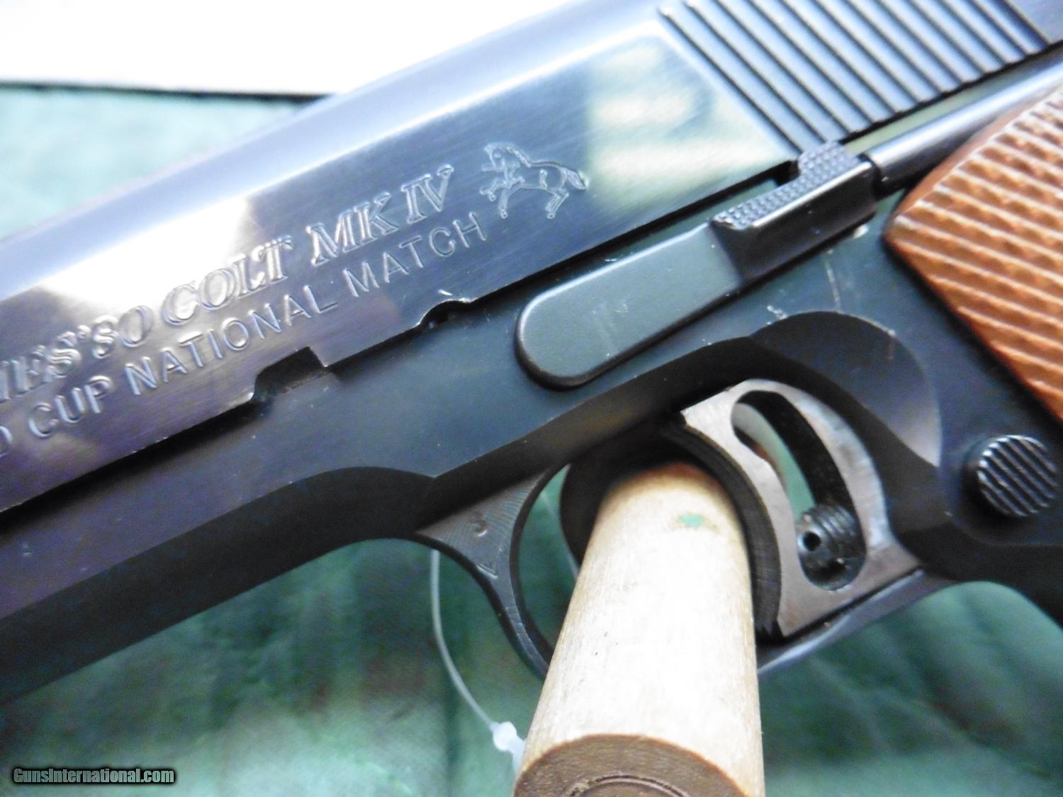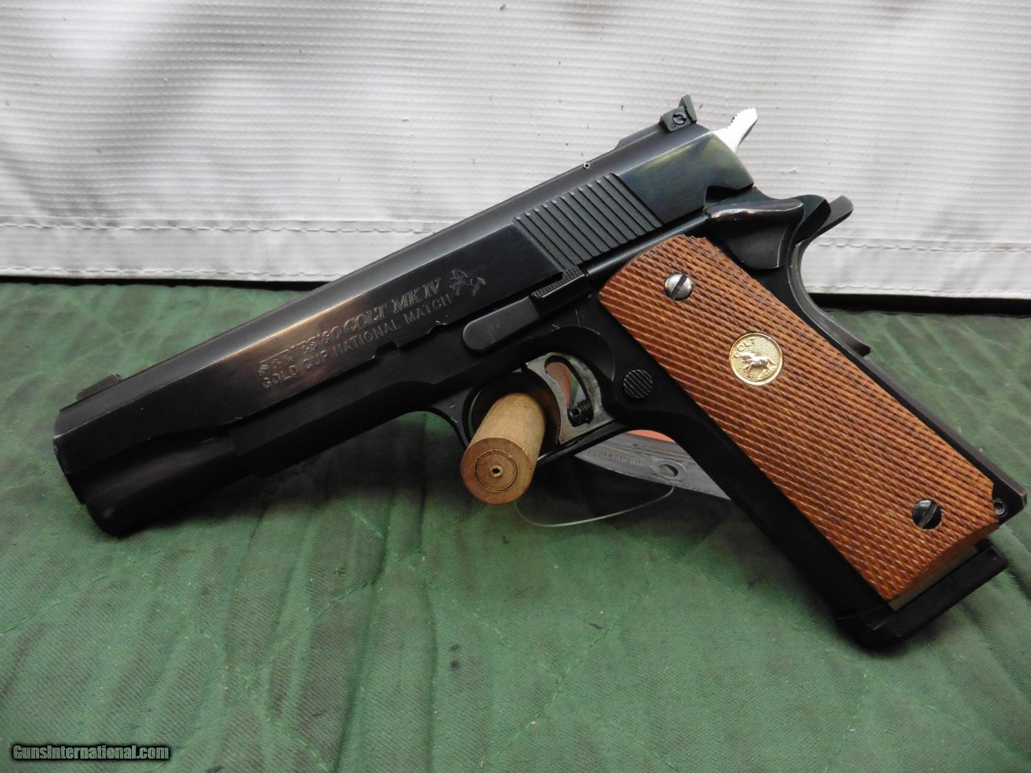 Description: For sale is a used Colt 1911 Gold Cup National Match. This is a series 80 MK IV in blue finish. Pistol has original checkered wood grips, adjustable trigger and adjustable rear sight. The firearm is in good overall condition with some minor scratches noted on frame (right side behind trigger). Blue finish in good condition with some wear noted along hard edges near muzzle. Pistol includes one magazine. No box or papers. Firearm is not available for sale in California. We accept all major credit cards, cashier checks and money orders. 3% processing fee for CC purchases. Buyer to pay shipping. No international sales. SOLD Manufacturer: COLT Model: GOLD CUP NATIONAL MATCH Serial Number: FN071XX Caliber Info: .45ACP |
