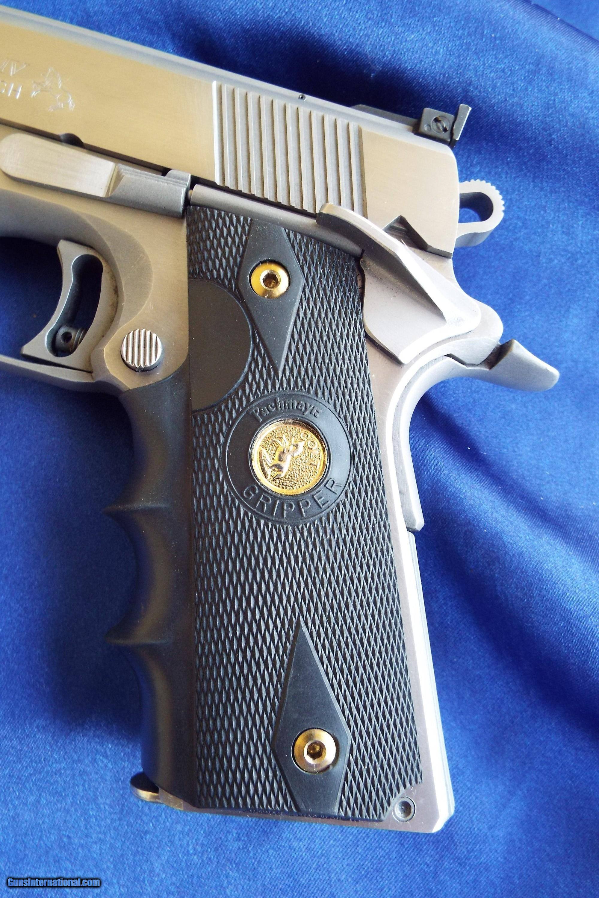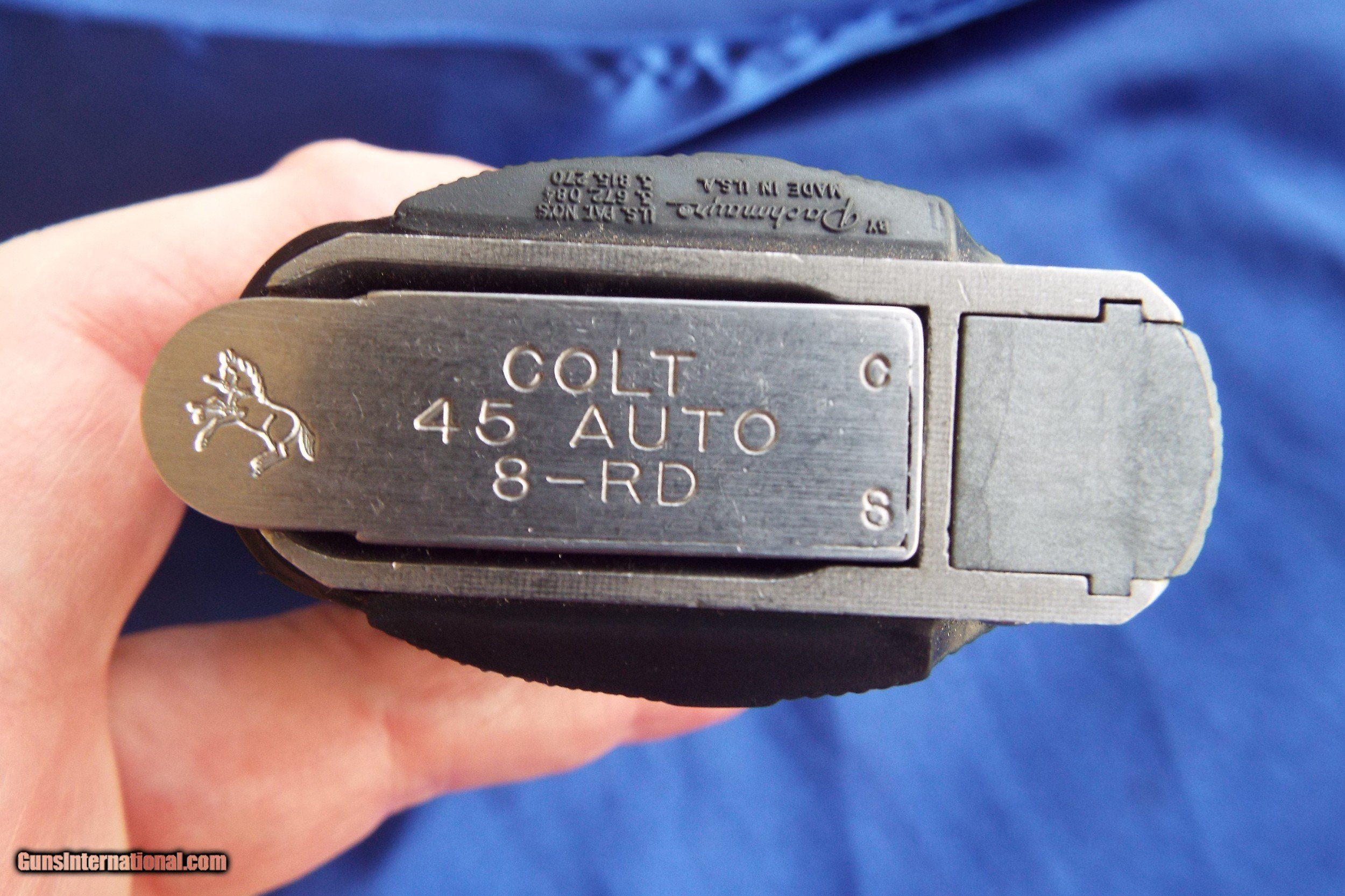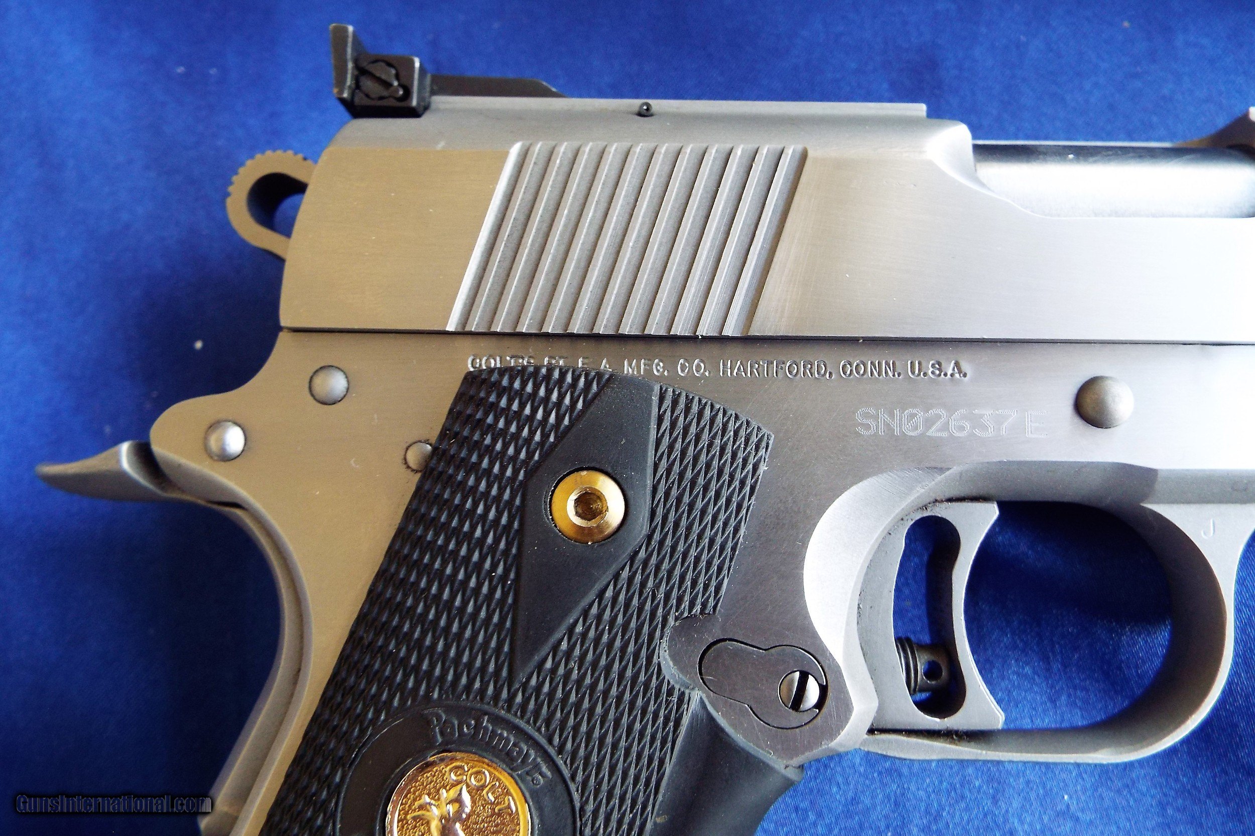 Description: STAINLESS COLT 1911 GOLD CUP NATIONAL MATCH SERIES 80 MK IV 45CAL. LIKE NEW! EXCELLENT CONDITION! This STUNNING pistol was manufactured in stainless steel with a matte finish and high polished flats. These were built-in stainless steel between 1986 and 1996. Single Action Only, Chambered in .45 ACP, this pistol has Colt-Elliason adjustable rear sight, wide groove adjustable target trigger, under cut front sight, flat mainspring housing, hand-honed internal parts, 5″ National Match barrel, and many other refinements as standard. This pistol includes a Colt case,(not original) and 2 original Colt magazines. The Bore is in great condition! SHIPPING IS $35 TO YOUR LOCAL FFL DEALER ~ NO INTERNATIONAL SHIPPING For purchase or questions please call Erica / Self Defense Inc. 772-349-0334 (Florida) SOLD Manufacturer: COLT Model: GOLD CUP NATL. MATCH SER.80 Serial Number: SN02637E Barrel Length: 5 Caliber Info: 45ACP Condition: EXCELLENT Metal Condition: EXCELLENT Bore Condition: EXCELLENT- SHINY Finish: STAINLESS Sights: ELLIASON ADJ Extras: 2 MAGS Case: COLT PLASTIC BOX Item Location: Florida |