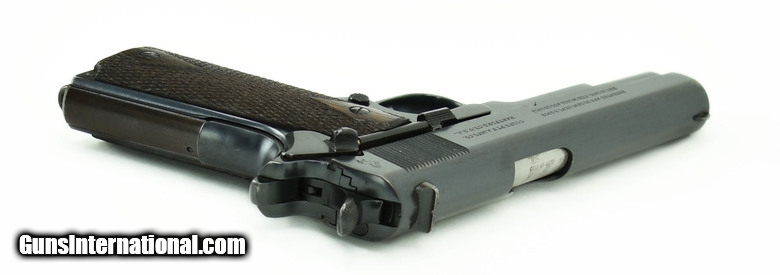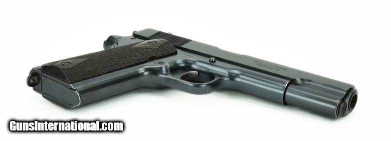 Description: Colt Government .45 ACP caliber pistol. Manufactured approximately 1917. Bore is excellent. Action works perfectly. Grips are excellent. Gun has approximately 95% blue. Very fine 1911 Colt Commercial model. SOLD |