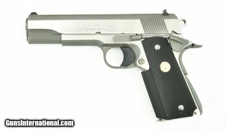 Colt Government .45 ACP caliber pistol. Stainless steel “enhanced” model, 1990’s vintage. Very Good condition.