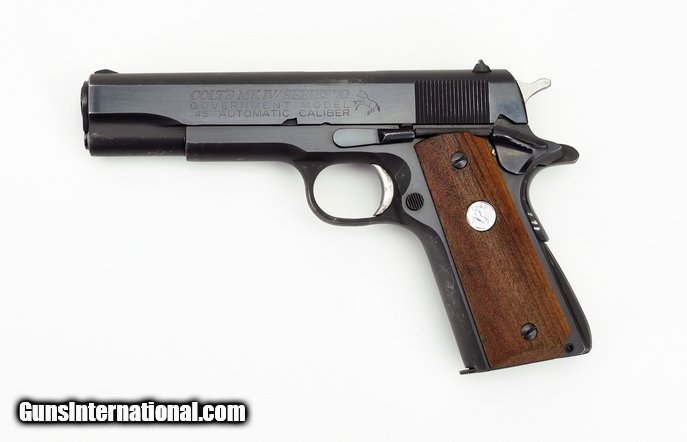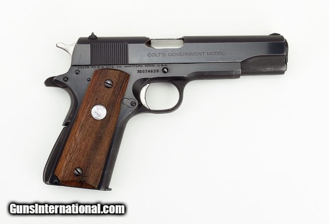 Description: Colt Government .45 ACP caliber pistol. Early series 70 with large roll mark. Near excellent condition.