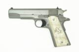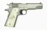Colt Government .45 ACP caliber pistol. Stainless Steel with etched design on slide and fancy grips.
