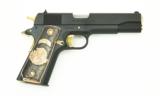 Colt Government 9mm caliber pistol. Customized with gold plated parts and Mexican style grips.New