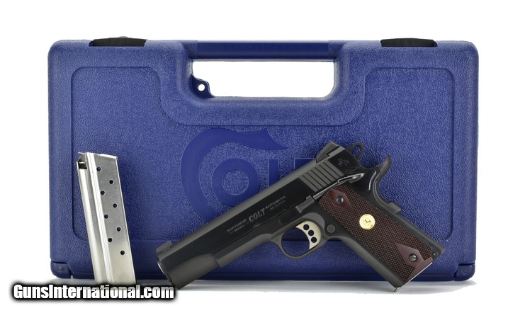 Description: Colt Government Competition Series .38 Super caliber pistol. Limited edition with blue finish and wood grips. New.