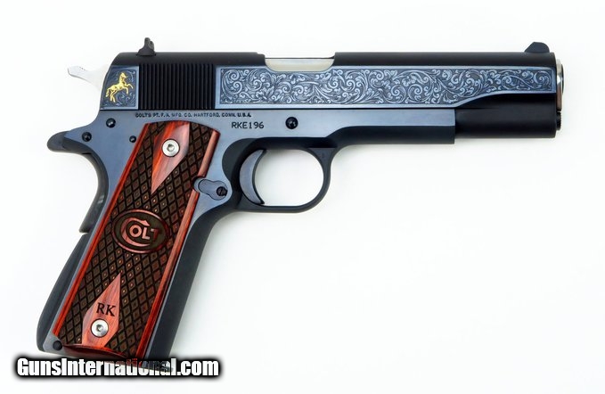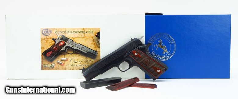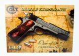 Colt Government Kornbrath .45 ACP caliber pistol. Rudolph Kornbrath one of 300 limited edition. Engraved in the style of Kornbrath. Mint condition with box.