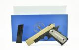 Colt Government M45A1 .45ACP caliber pistol. This is a Marine Corps model. It has a 2-tone finish, night sights, an ambidextrous safety and G10 grips. New.