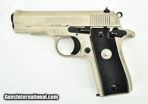 Description: Colt Government MKIV .380 ACP caliber pistol. Government .380 with satin finish. Finish shows blemishes otherwise very good overall condition.