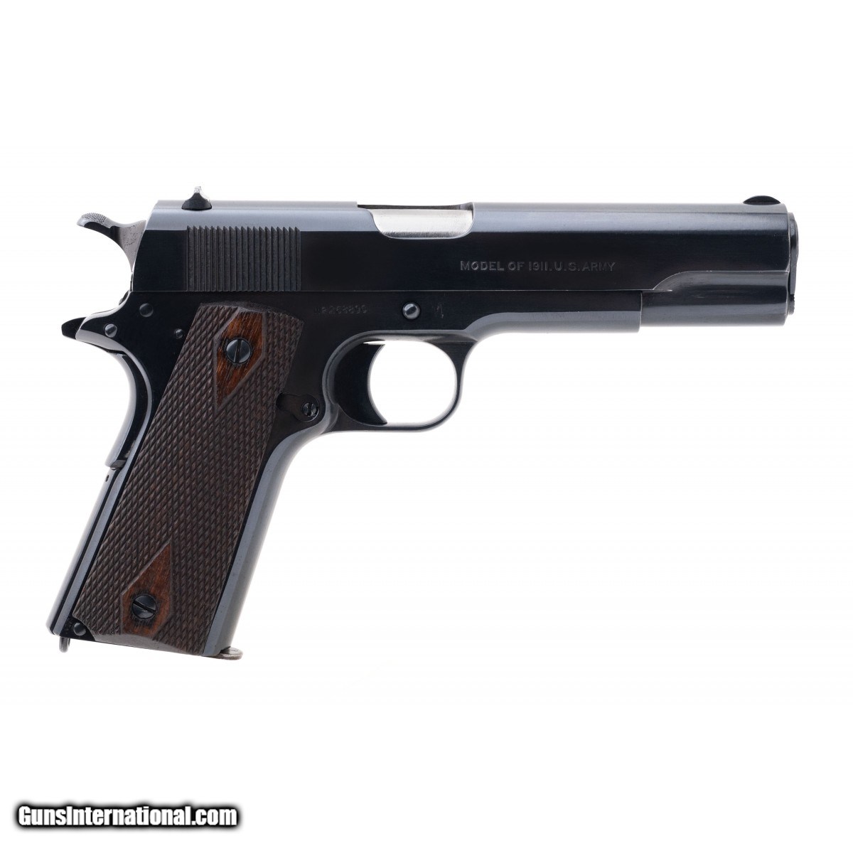 Description: " SN: 268890. Made in 1918, .45 ACP with a 5"" barrel. WWI issue US Military pistol. Bore is excellent. The metal has been refinished, looks very good. SOLD |