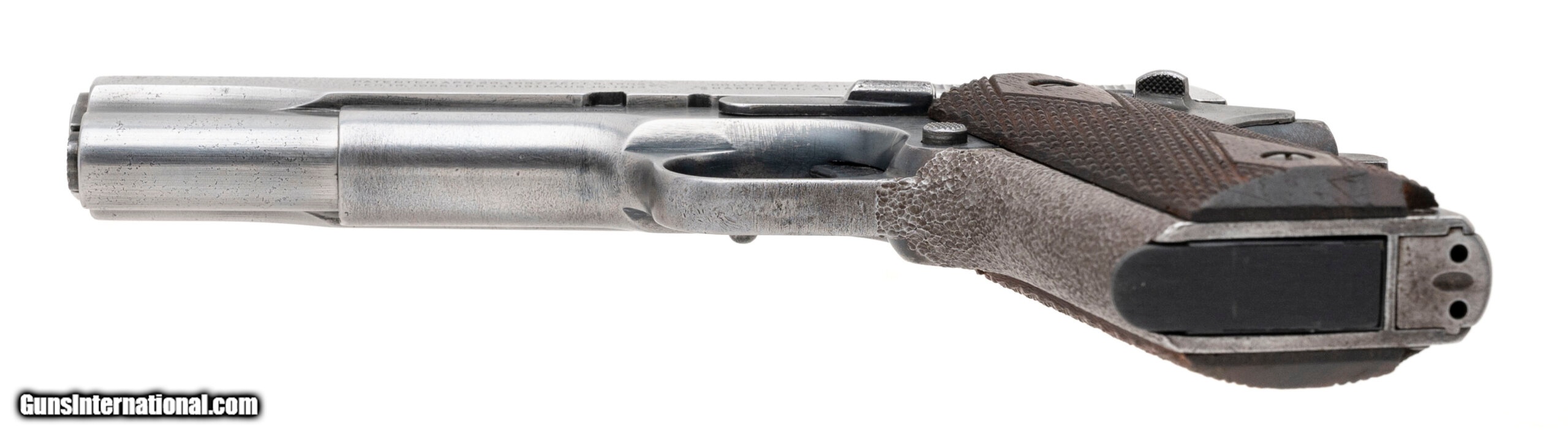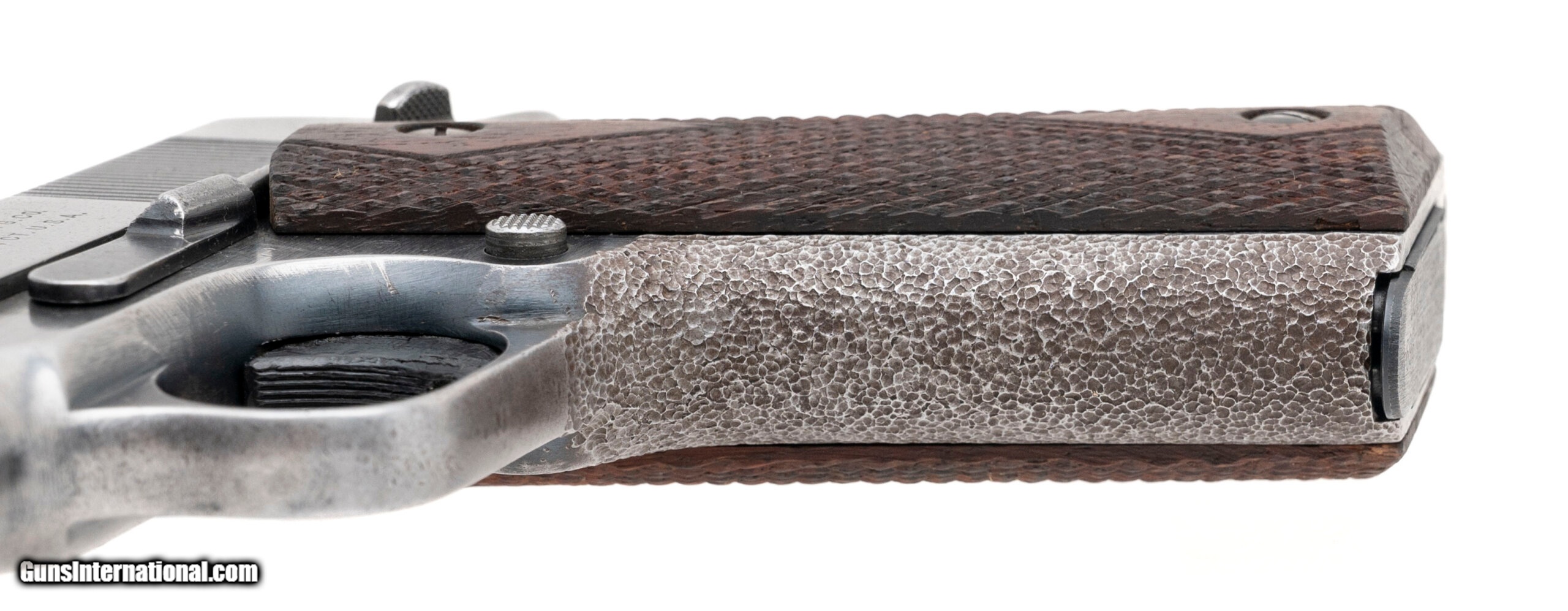 Description: "SN: 142823. Made in 1917, .45 auto with a 5"" barrel. Bore is very good. WWI US military pistol that's been modified. The metal has no finish remaining, just patina. The grip frame has ben stippled. The grips are modern replacements. An interesting gun, in fair condition. SOLD Curio/Relic: Yes |