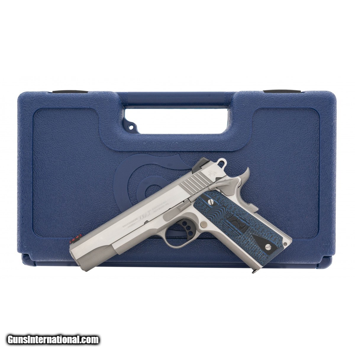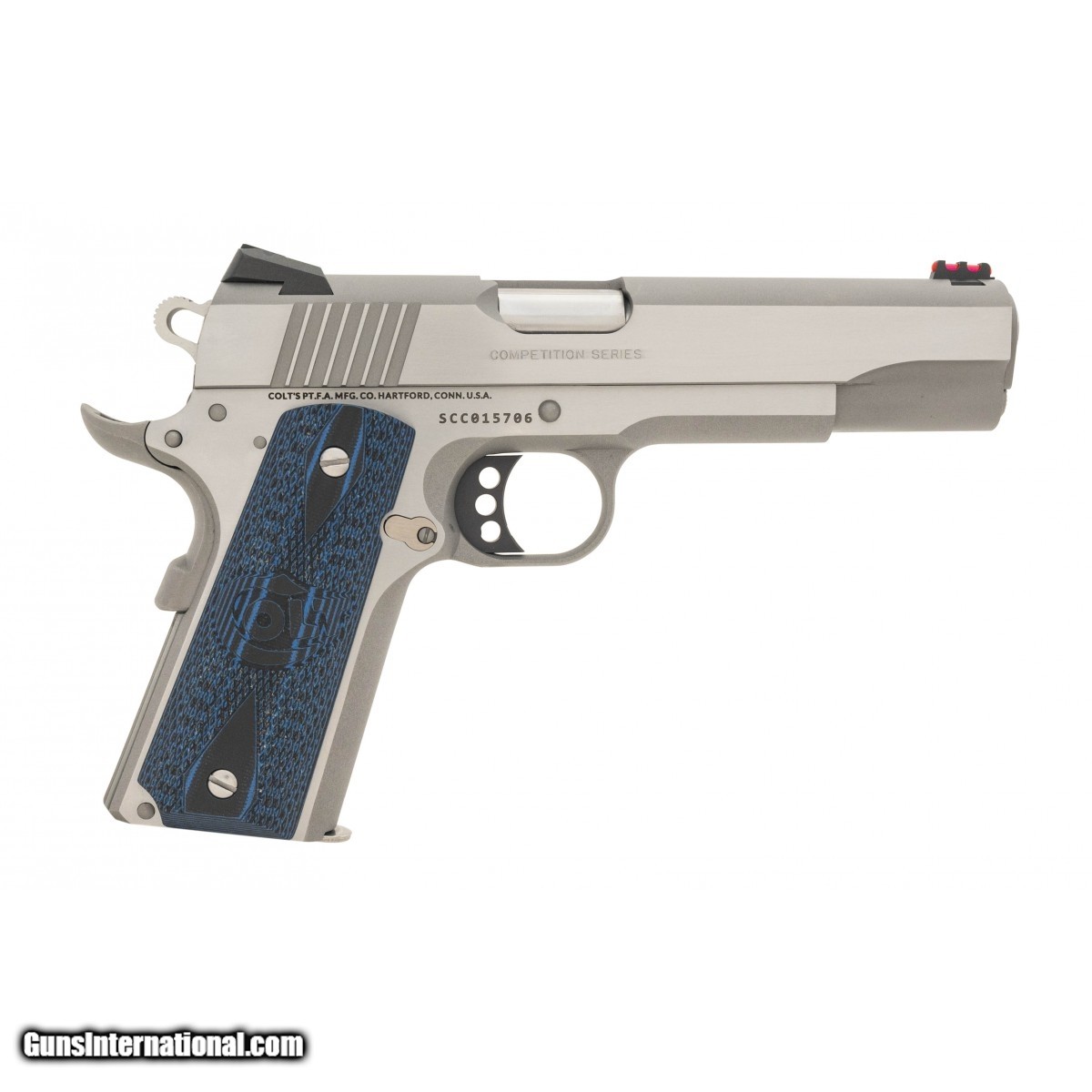 SN: SCC015706. Stainless steel Competition model with NM barrel and blue G10 grips. Excellent condition with box.
